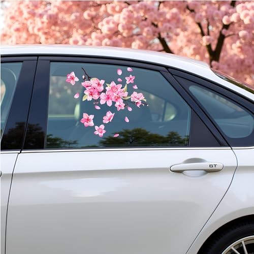 2pcs Pink Cherry Blossom Vinyl Car Sticker Auto Flower Decal Windshield Window