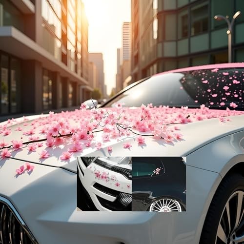 как выглядит 2pcs Pink Cherry Blossom Vinyl Car Sticker Auto Flower Decal Windshield Window фото