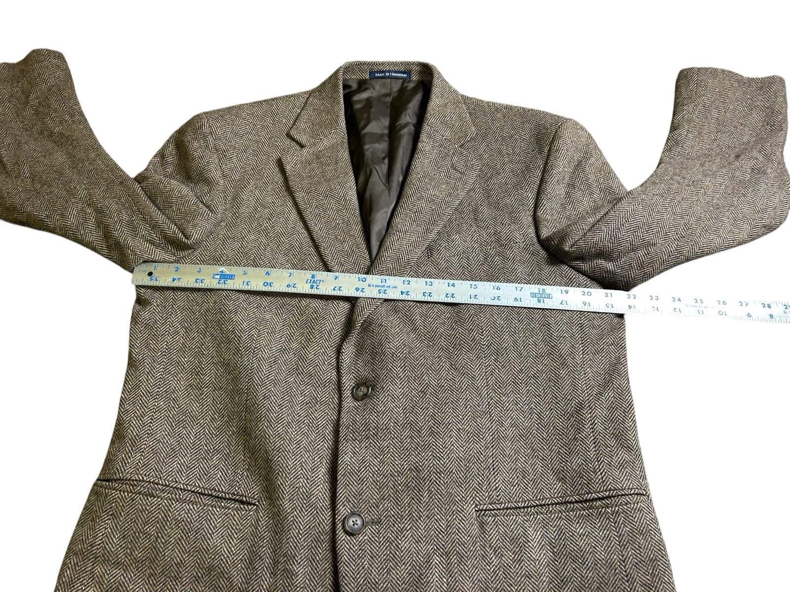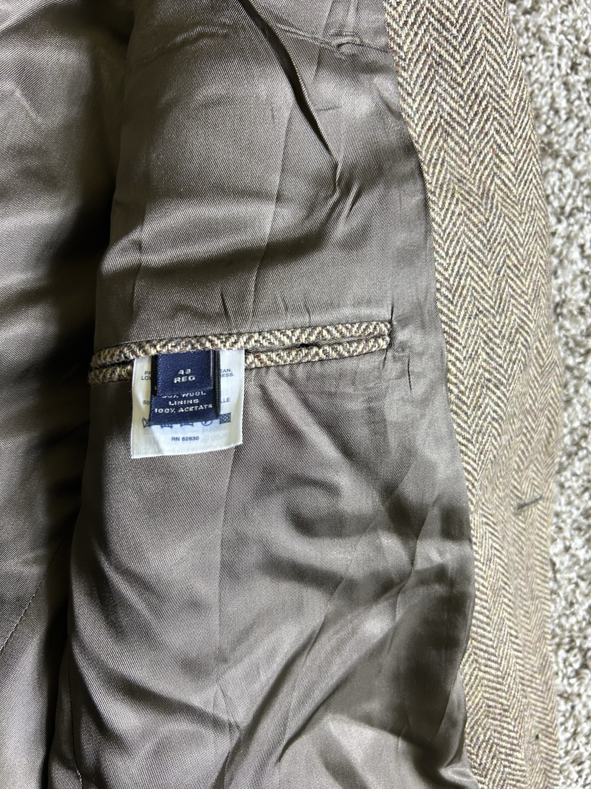 Lands' End Men s Wool Tweed 2-Button Blazer Brown Beige Herringbone 42 R