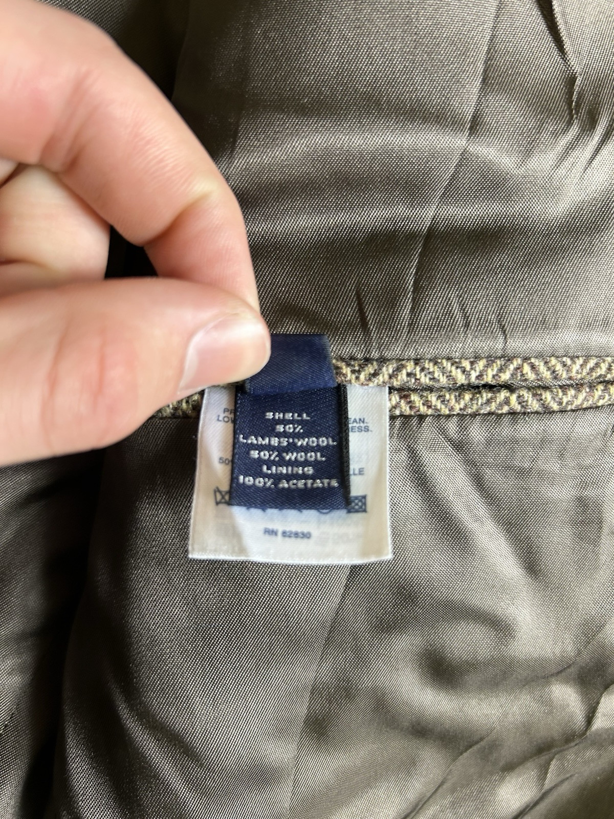 как выглядит Lands End Men s Wool Tweed 2-Button Blazer Brown Beige Herringbone 42 R фото