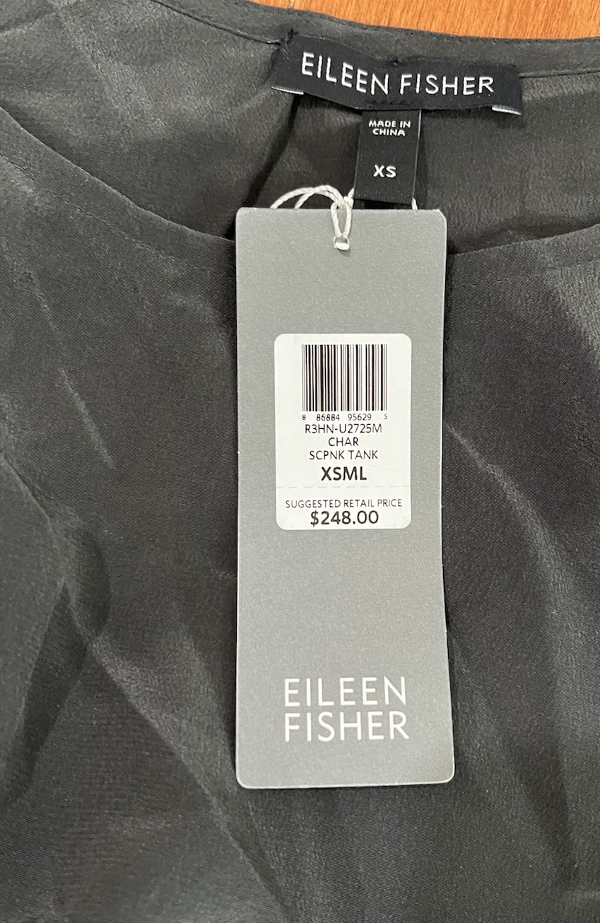 NWT Eileen Fisher Charcoal Silk w Lace Trim Scoop Neck Tank Top Sz. XS