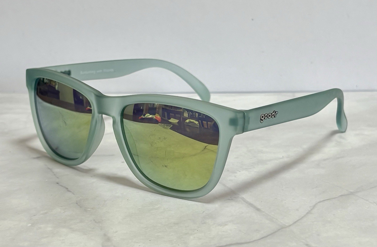 Goodr SUNBATHING WITH WIZARDS Blue Frame Polarized Gold Mirror Lens Sunglasses