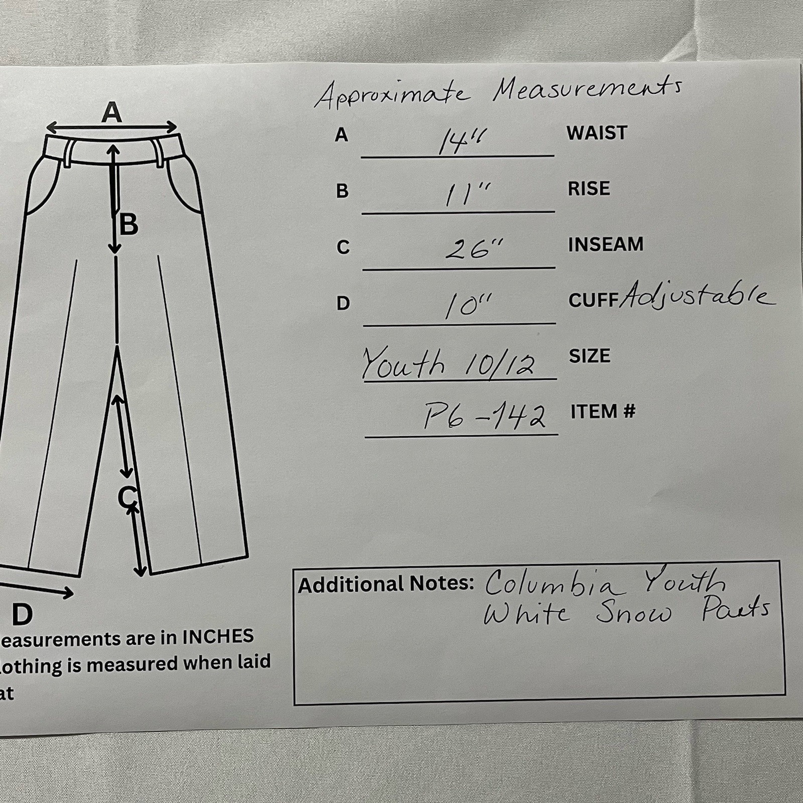 Columbia Snowboard Pants Youth 10/12 White Pockets Zipper Winter Outdoor Ski