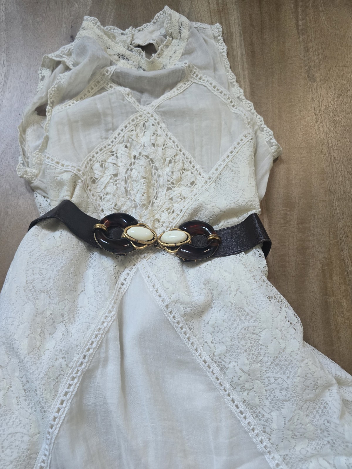 Vintage Sonia Rykiel Italy Leather Belt Tortoise Resin Buckle Brown Designer M/L