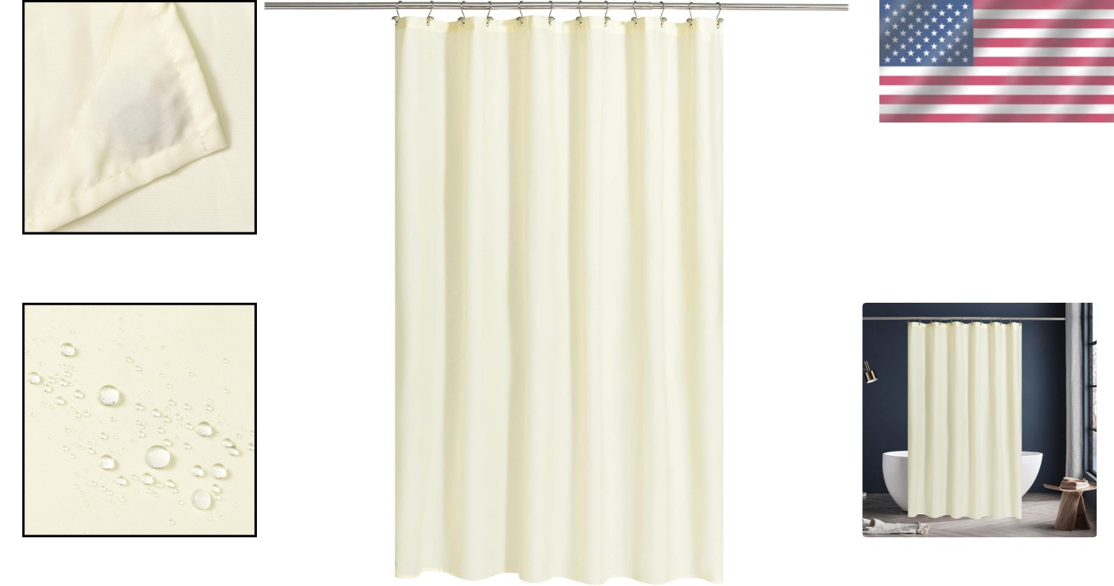 как выглядит 72x72 Luxurious Fabric Shower Curtain - Cream, Light-Filtering Washable фото