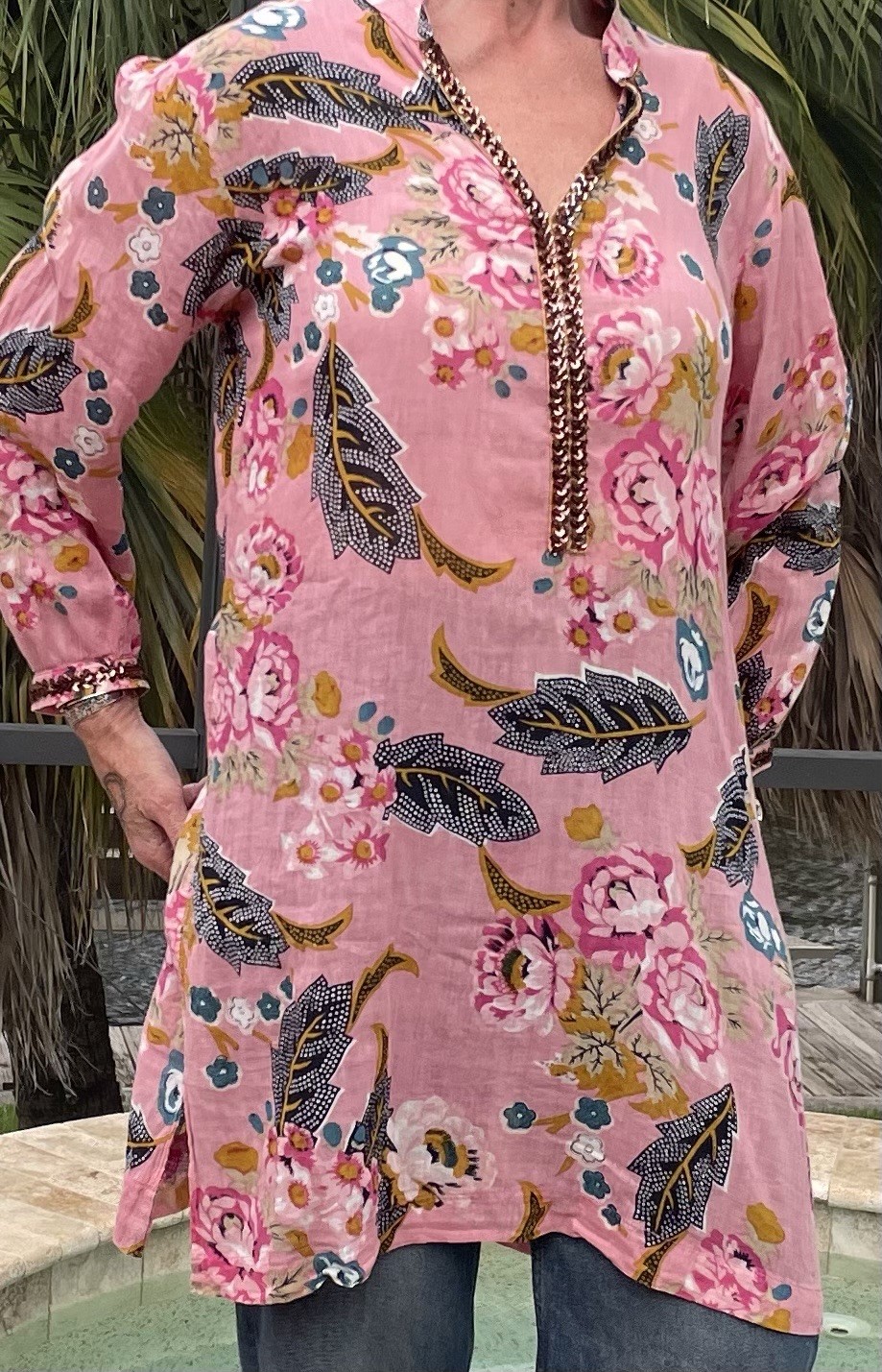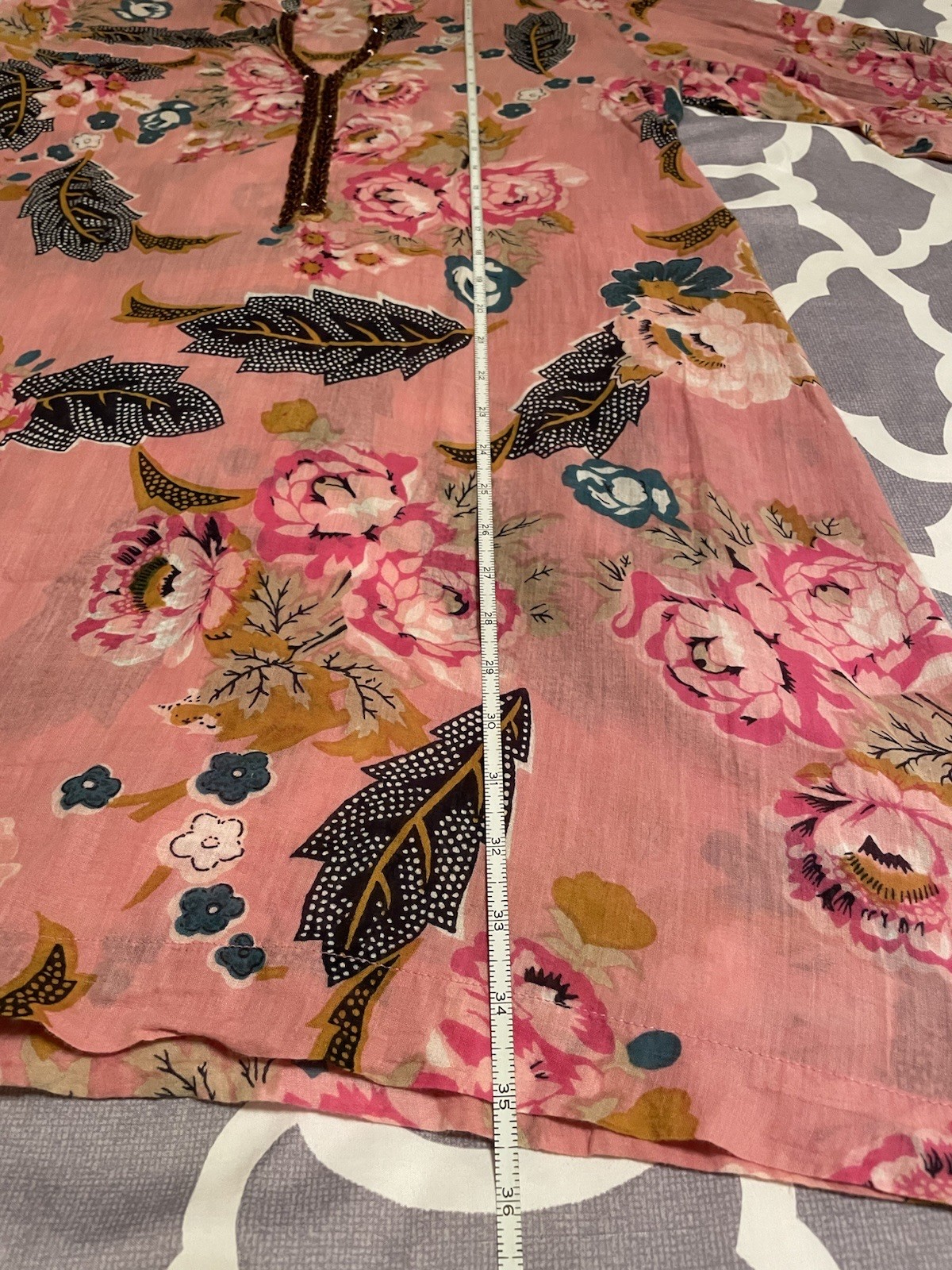 как выглядит Pink Floral Printed Kurti Top Tunic Dress EUC Long Sleeve 100 Cotton фото