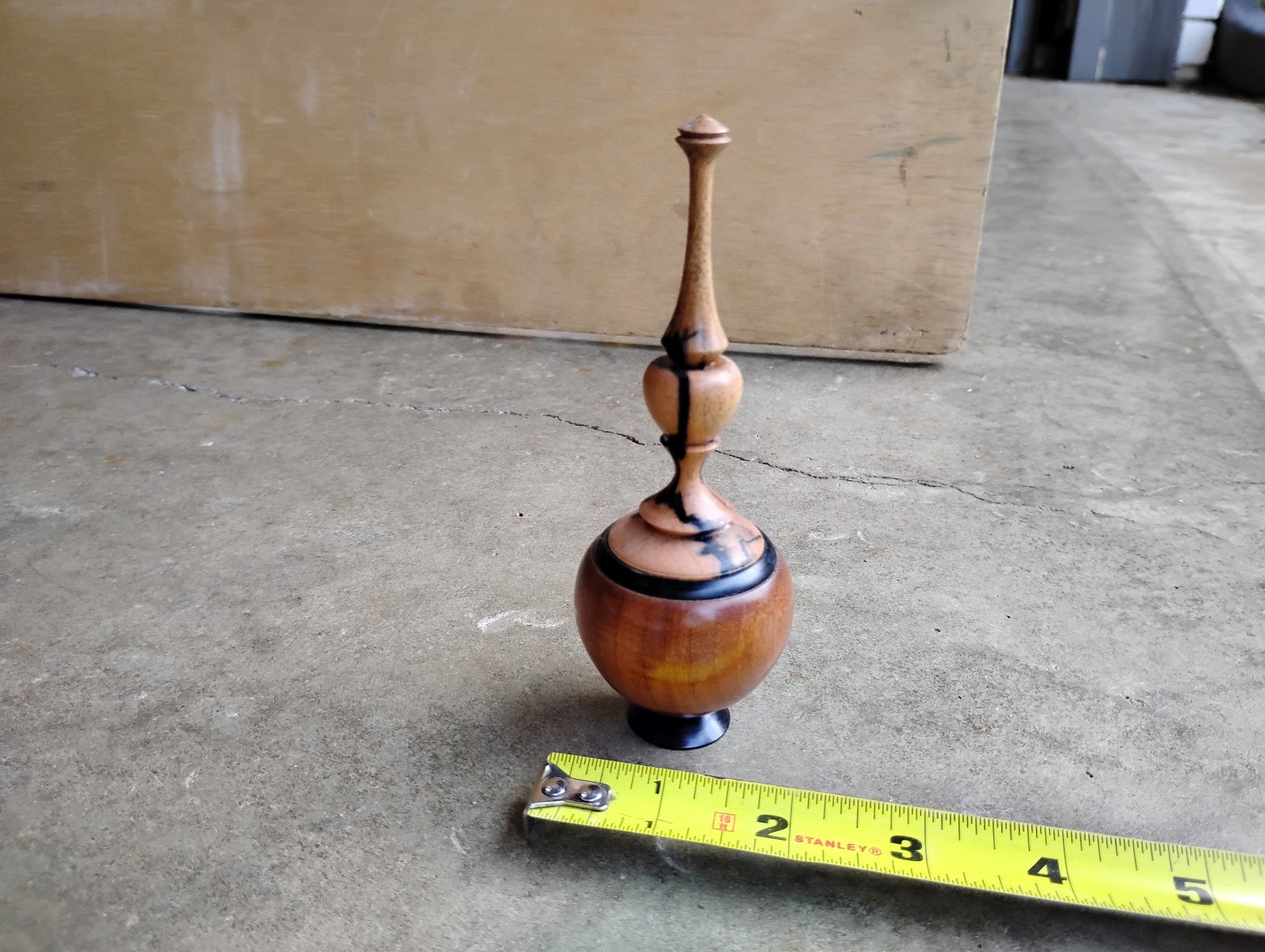 как выглядит Small Hand Turned Wooden Wood Lidid Jar / Box Dish Jar with Finial фото