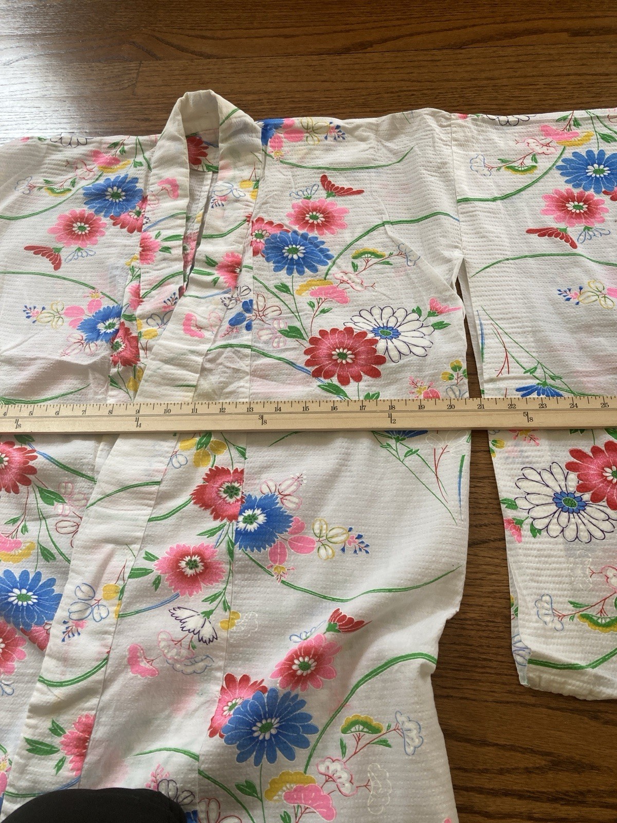 как выглядит Vintage Japanese Floral Yukata Kimono Handmade Polyester Young Girls With Sash фото