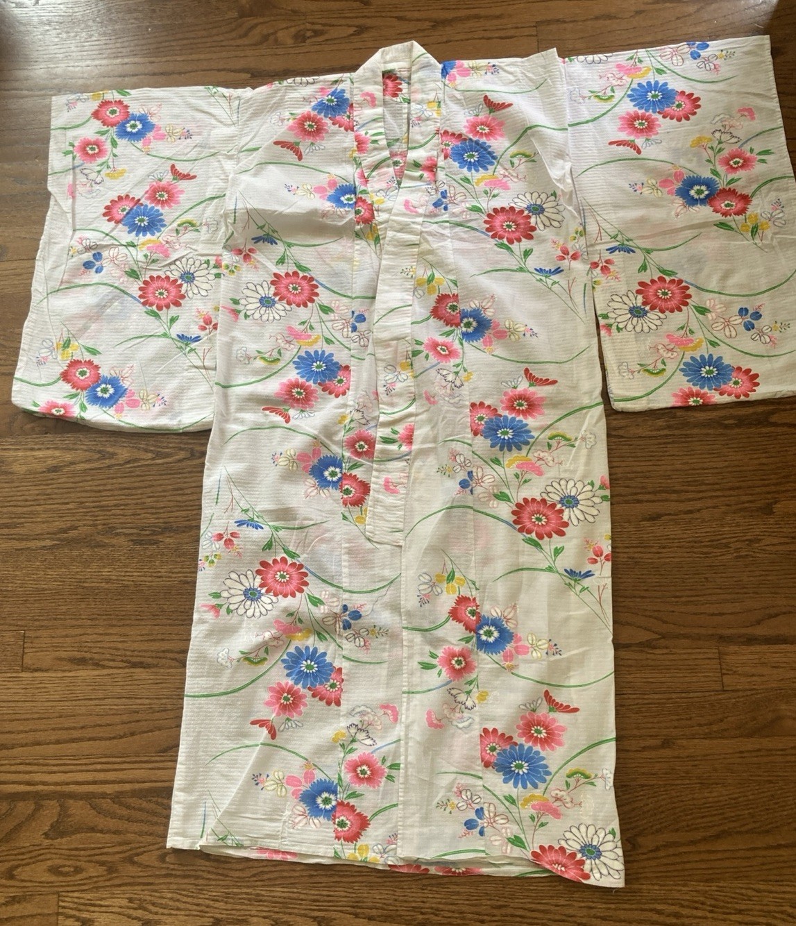 Vintage Japanese Floral Yukata Kimono Handmade Polyester Young Girls With Sash