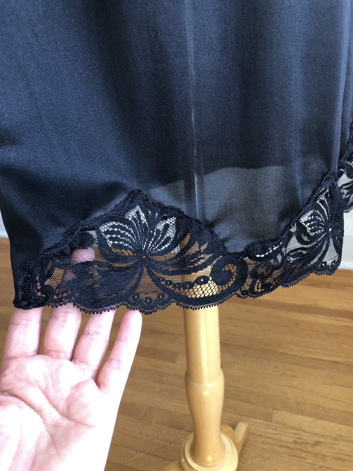 как выглядит FLAWLESS VTG WONDER MAID Non-Cling Black Lacey Full-slip Dress Lingerie SZ 36 фото