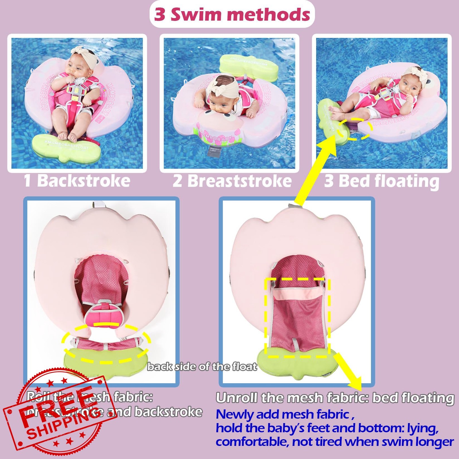Mambobaby Swim Float with Tail and Canopy 3-24mos Infant Baby Pool