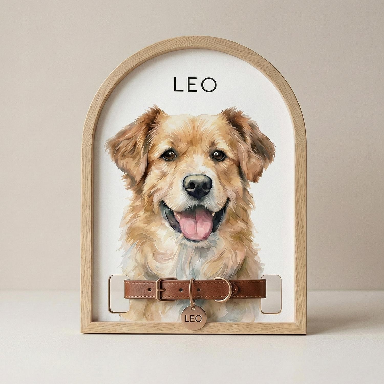 Custom Watercolor Pet Memorial Frame with Collar Holder, Pet Memorial Collar Hol