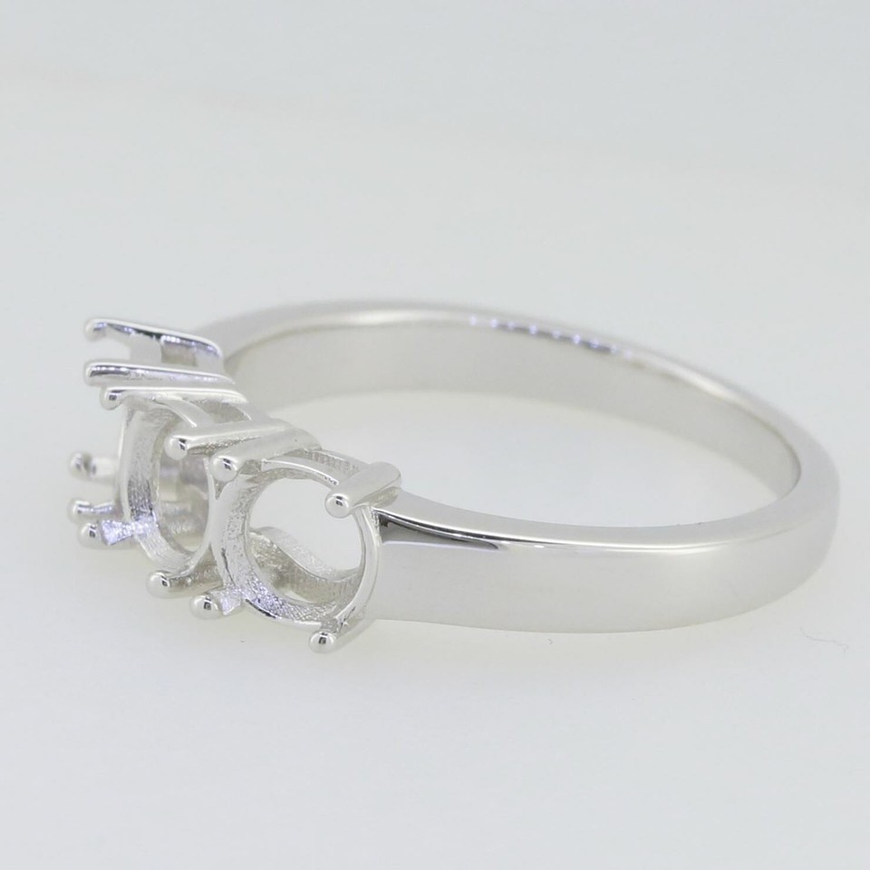MTO Sterling Silver Semi-Mount Ring Setting 3 Stone Design Round 5x5mm Women s