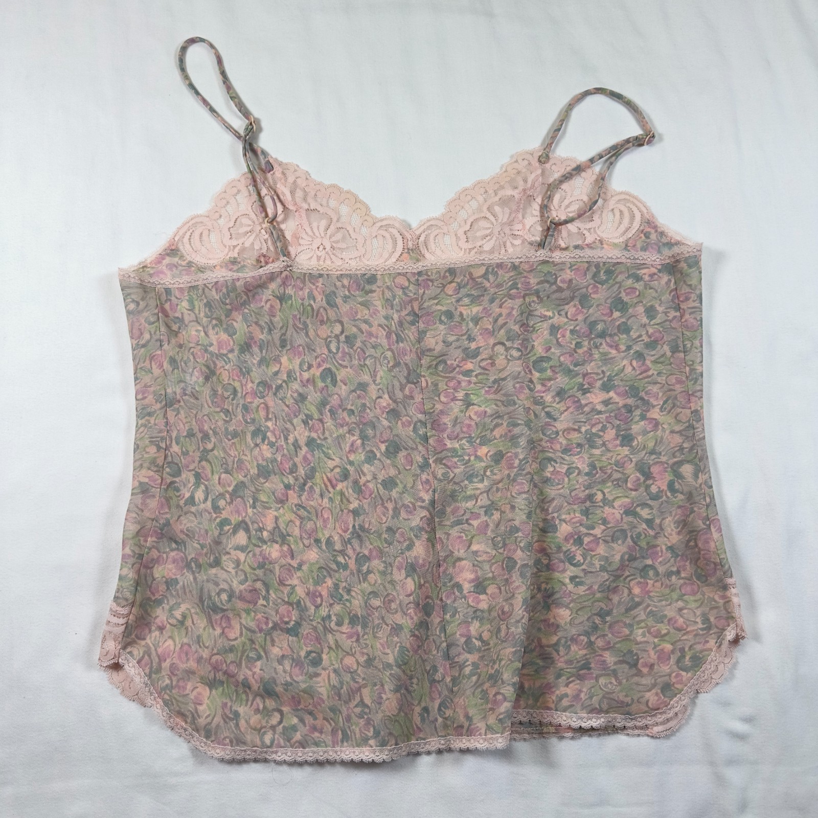 Vintage Vanity Fair Pink Lace Floral Paisley Cami Camisole Top 38 Made in USA