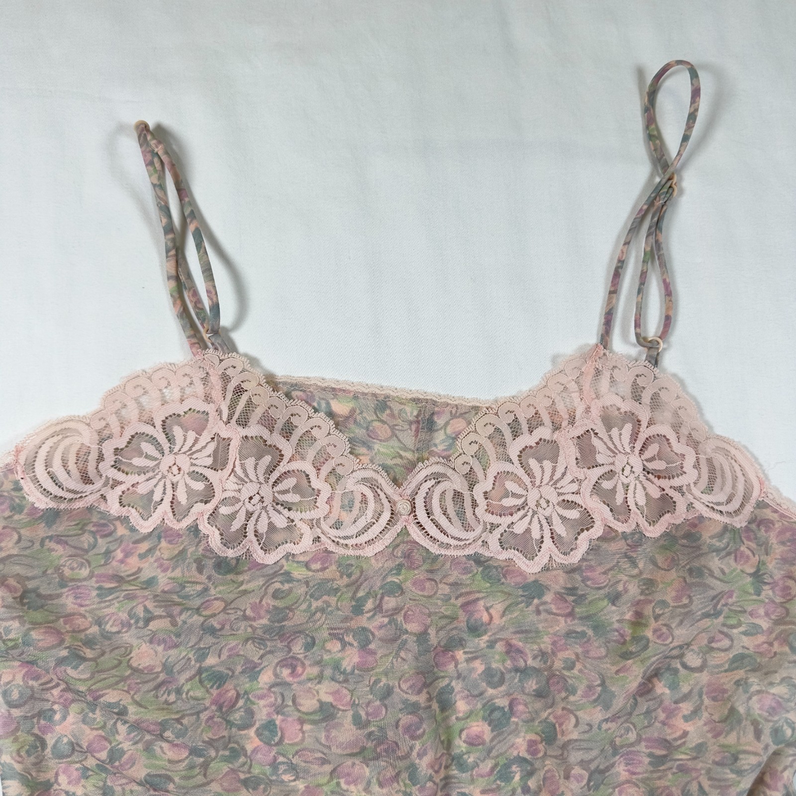 как выглядит Vintage Vanity Fair Pink Lace Floral Paisley Cami Camisole Top 38 Made in USA фото