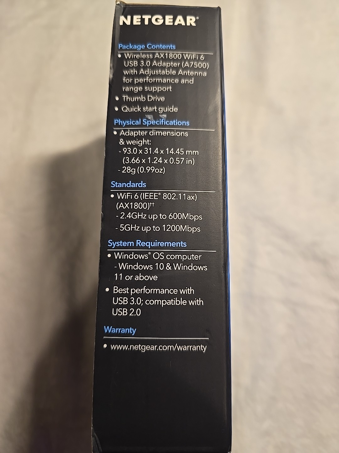 NETGEAR Nighthawk WiFi 6 USB 3.0 Adapter A7500 AX1800 Dual-Band