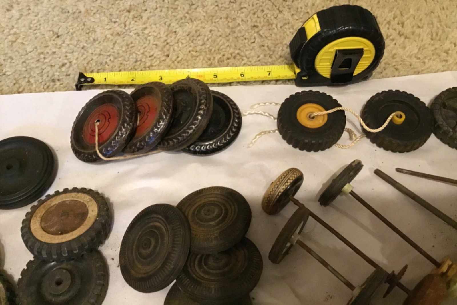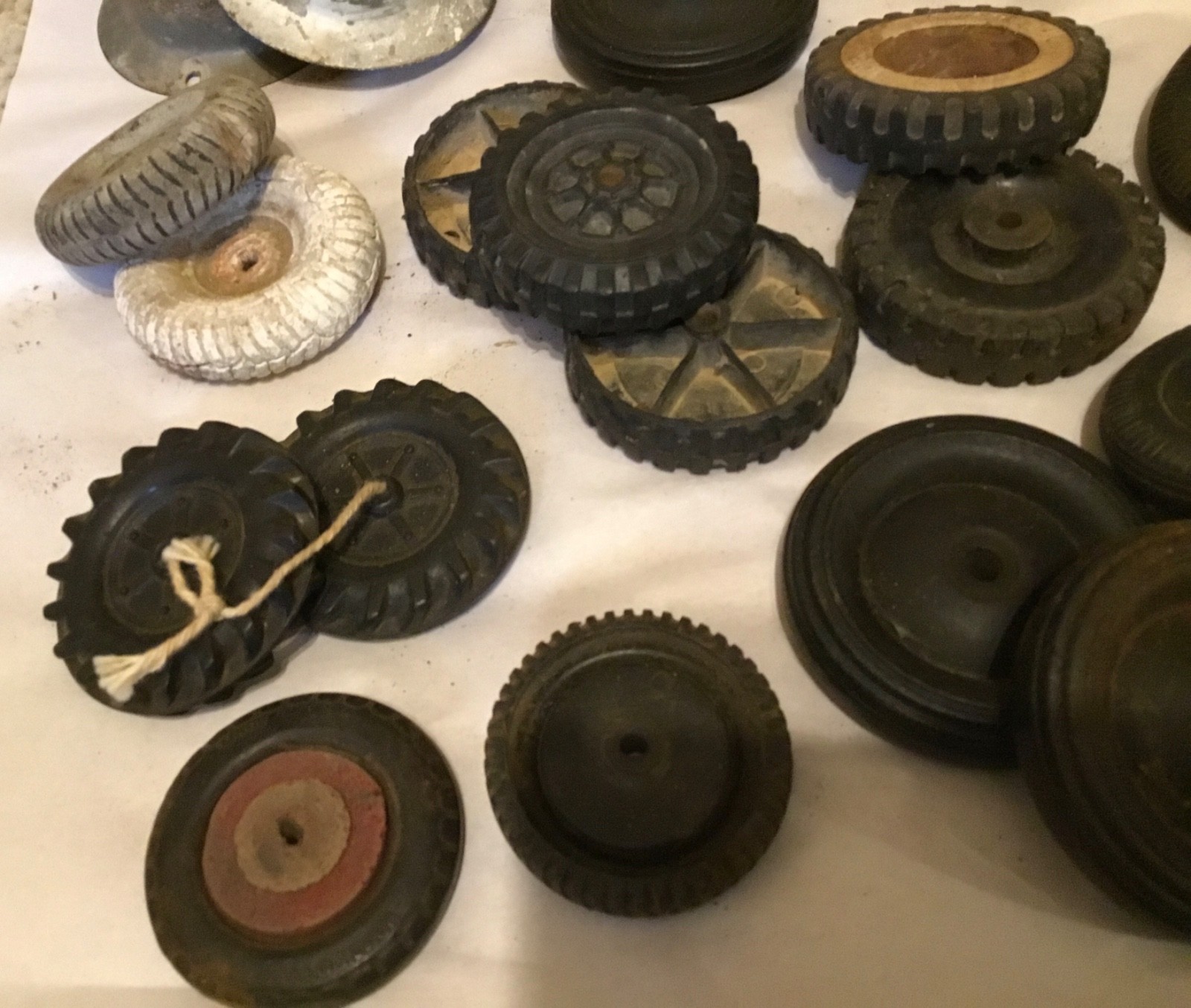 как выглядит Lot of 40 Vintage Antique Toy Parts Multiple Kinds of Wheels, Metal, Rubber фото