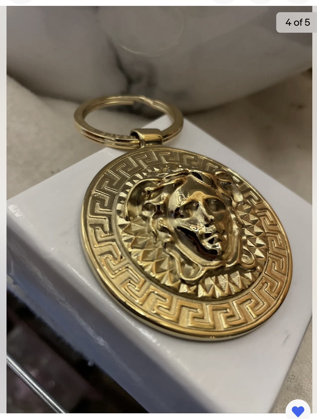 Versace Large Gold Keychain Medusa Head Keychain with Key Ring