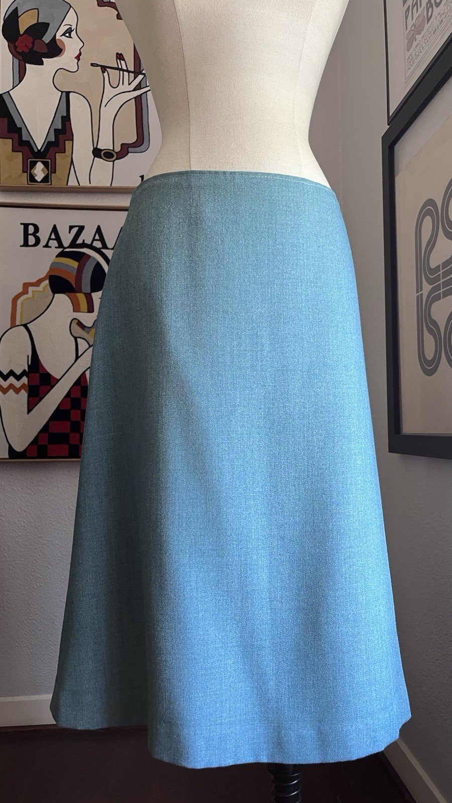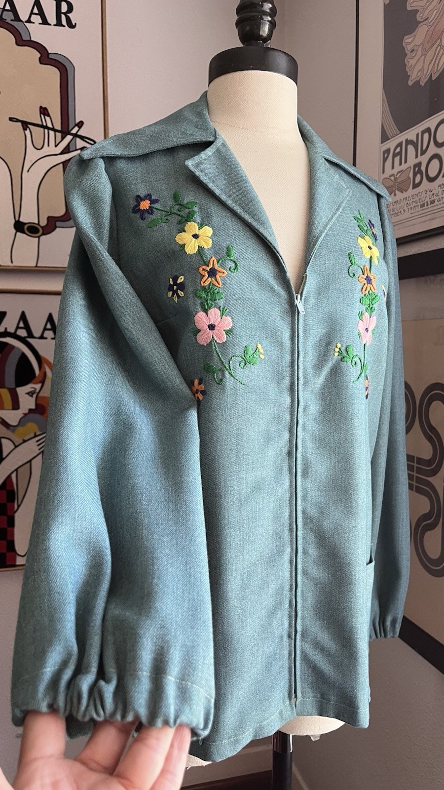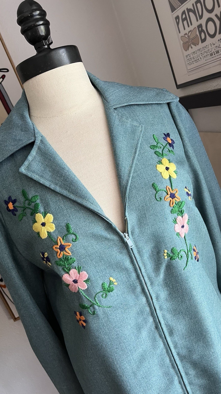как выглядит Vtg 70s 2pc Embroidered Skirt Jacket Chambray Set фото