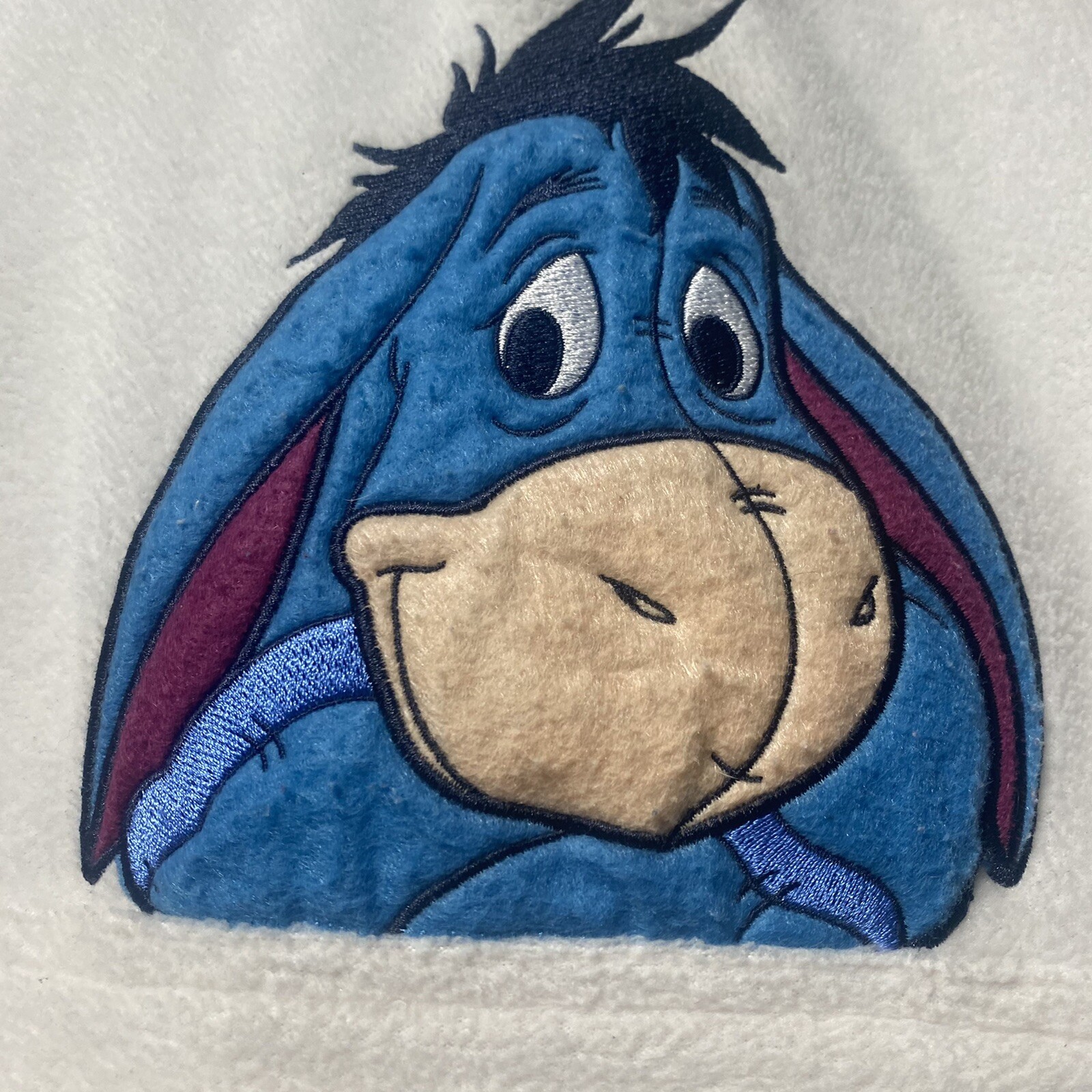 Disney Eeyore white fleece embroidered Patch pull over hoodie 1/4 Zip Size S