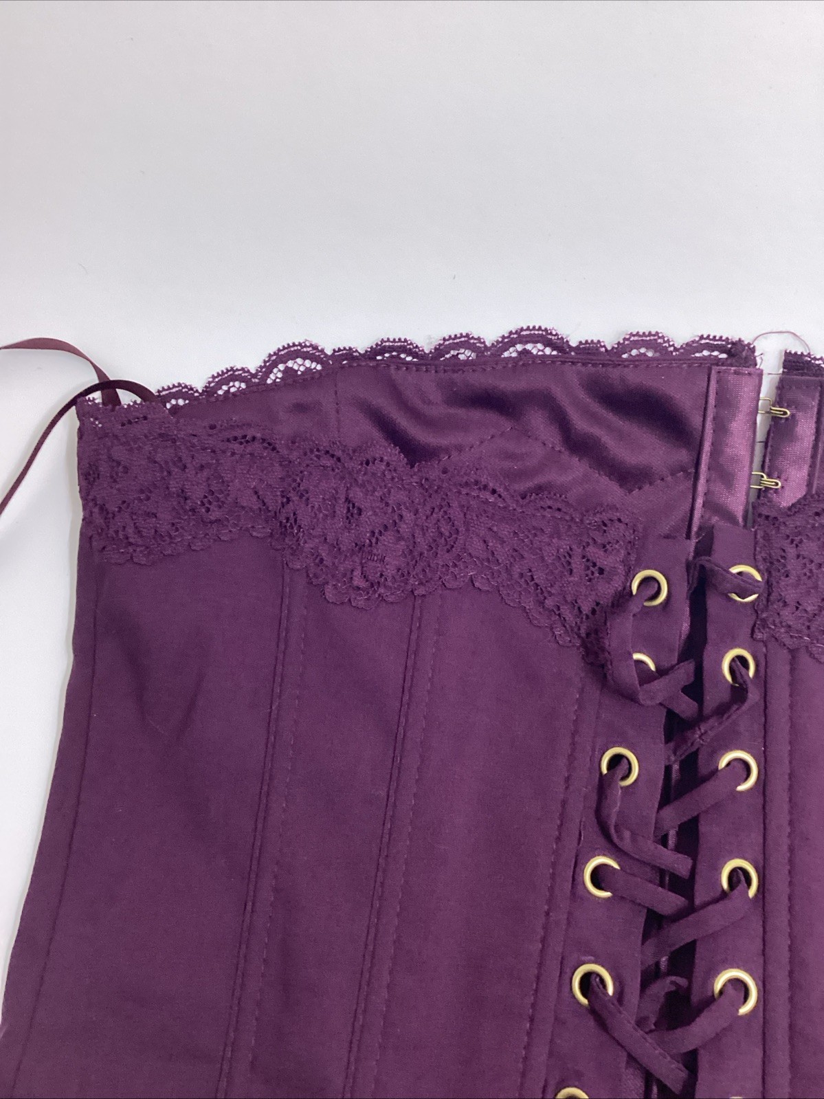 Windsor Lace Up Corset Top Plum Burgundy Boned Bustier Goth Y2K L NWT