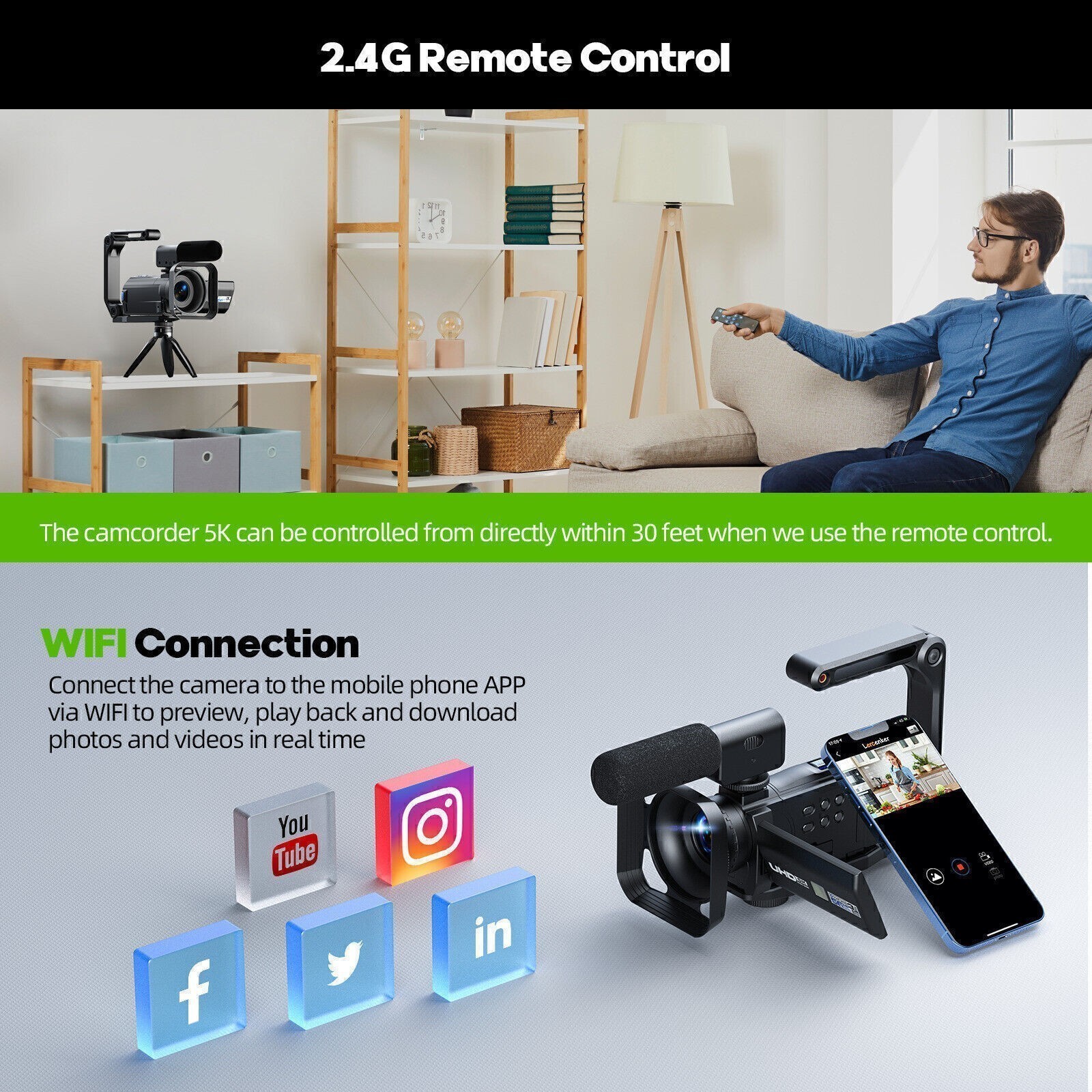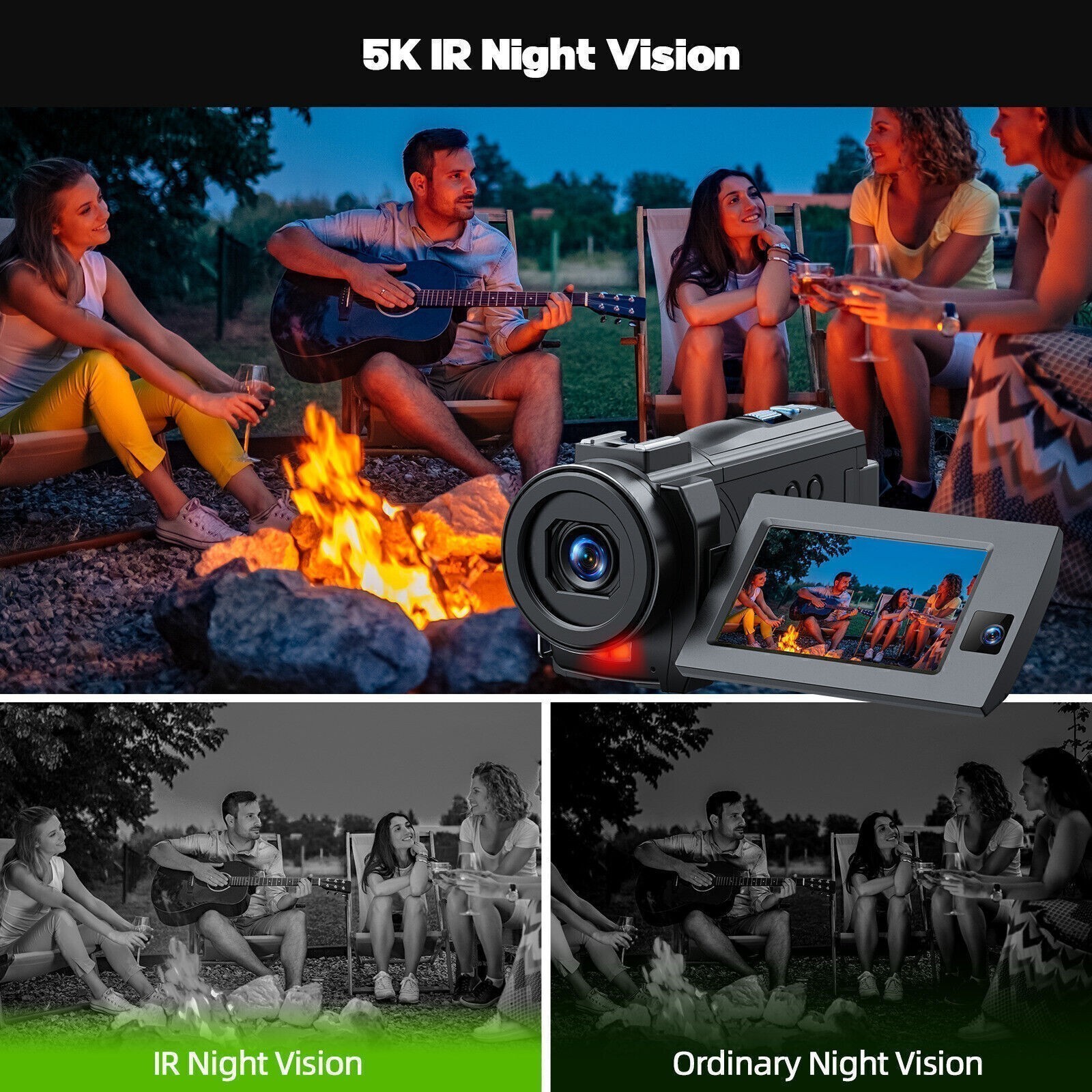5K Camcorder Video Camera Dual Lens WiFi IR Night Vision YouTube Vlogging Camera
