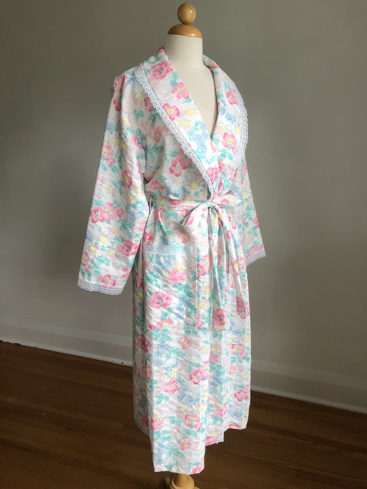 STUNNING NWT VTG CACHET Floral PolyCottton White Lace Full-length Robe SZ M