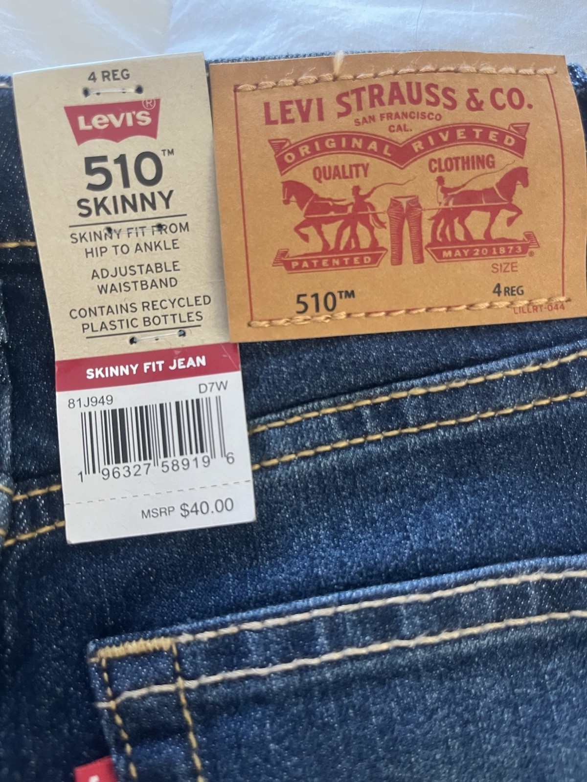 как выглядит Levi s 510 Skinny Jeans Kids Size 4 Dark Wash Denim NWT Boys Slim Fit фото