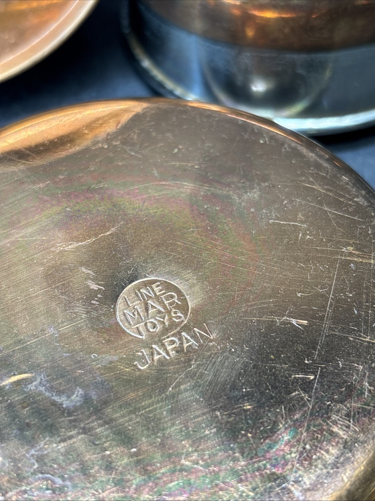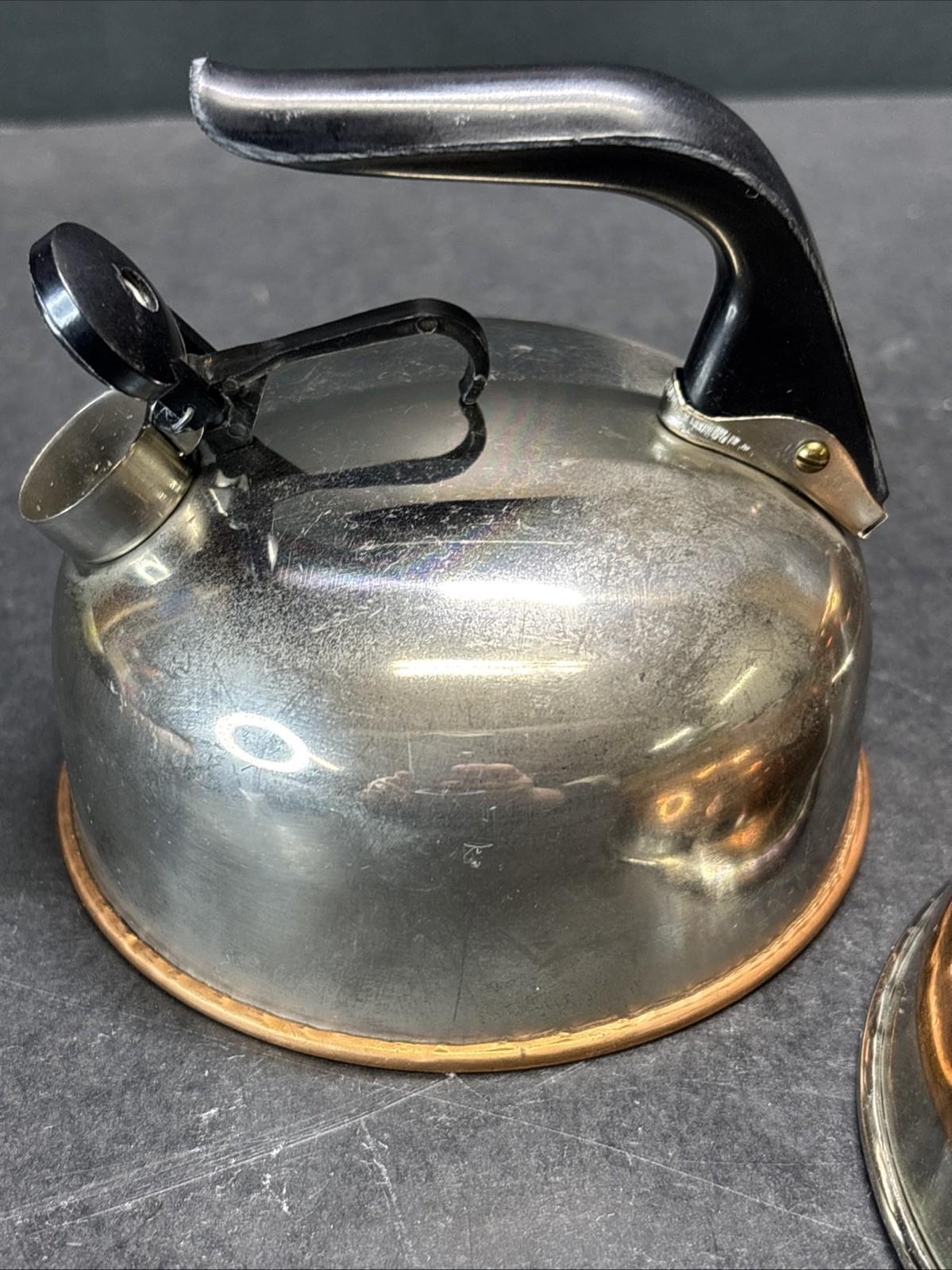 Vintage Kids Toy Cooking Tea Kettle/Pans/Lid Stainless Copper Bottom 4 Pc Set