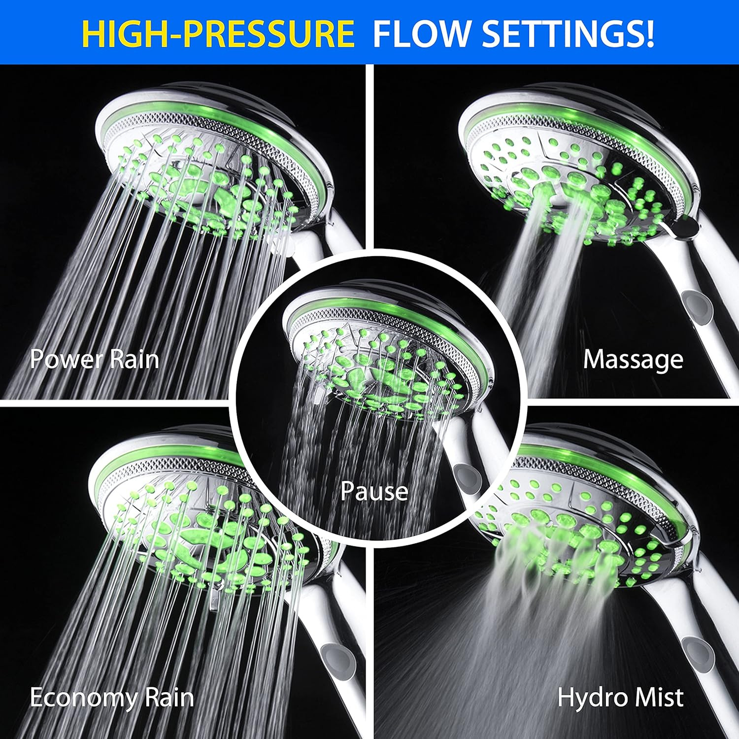 5-Mode Rechargeable LED Handheld Showerhead with Chrome Finish