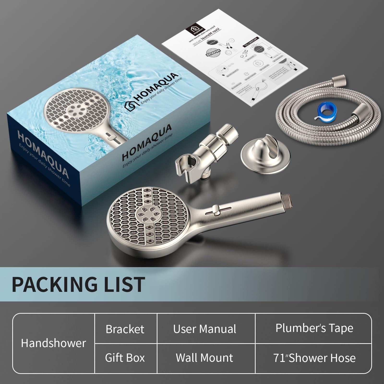 High Pressure Shower Head 9-Spray Modes Handheld Shower 71 Hose Brushed Nickel