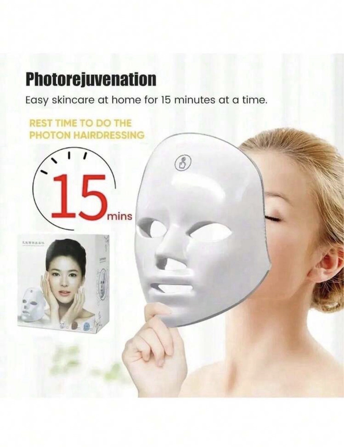 как выглядит 7 Color LED Face Mask Red Light Therapy Laser Anti Aging Wrinkle Acne Treatment фото