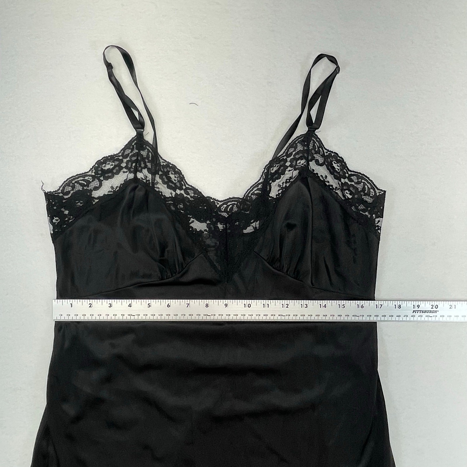 как выглядит Black Lace Slip Dress Satin Midi Lingerie Y2K Goth Coquette Small Feminine фото