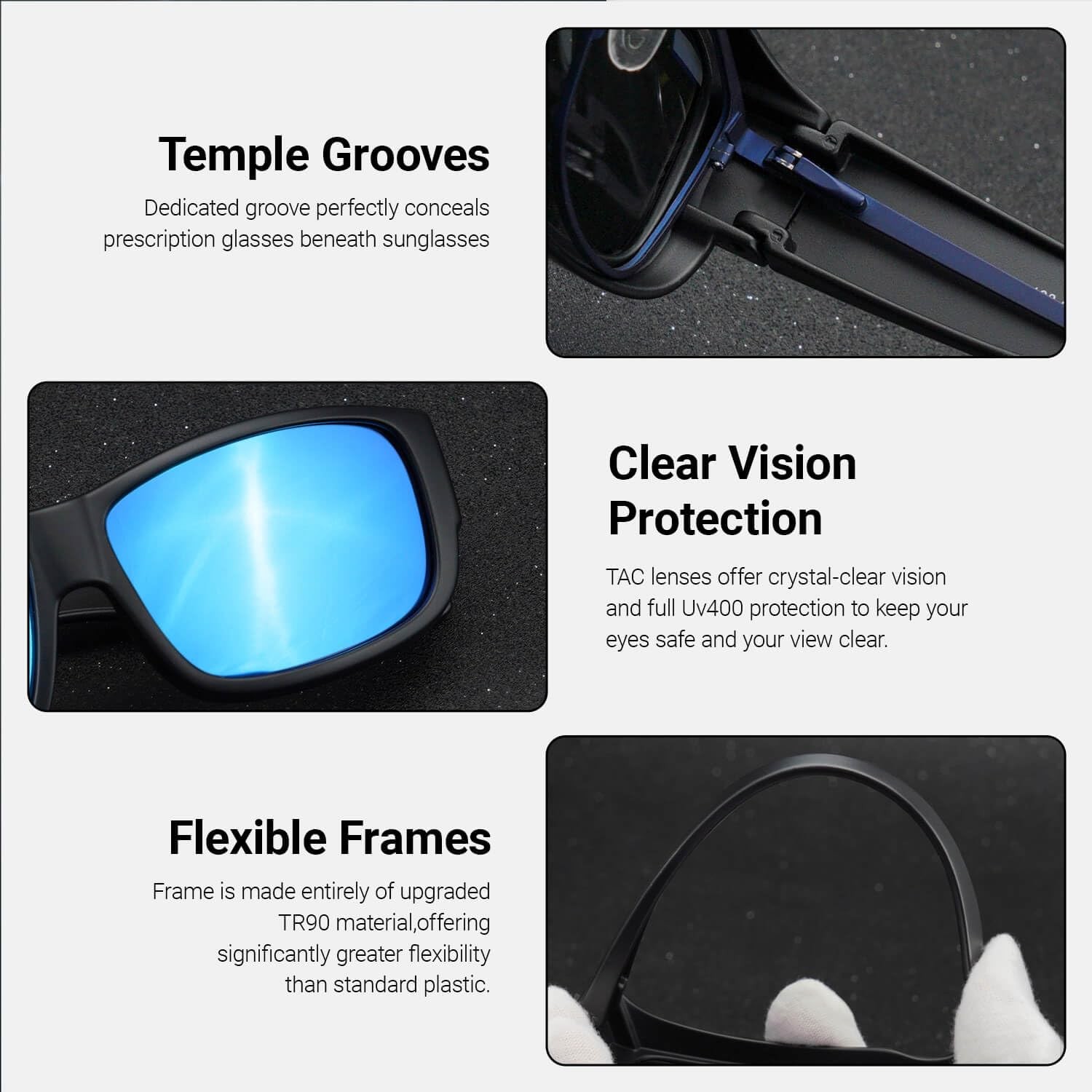 Polarized Fit Over Glasses Sunglasses For Men, Rectangle Wrap Around Sun Glas...