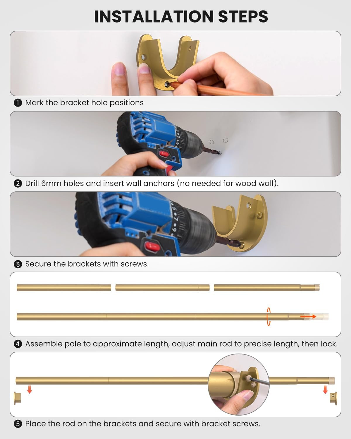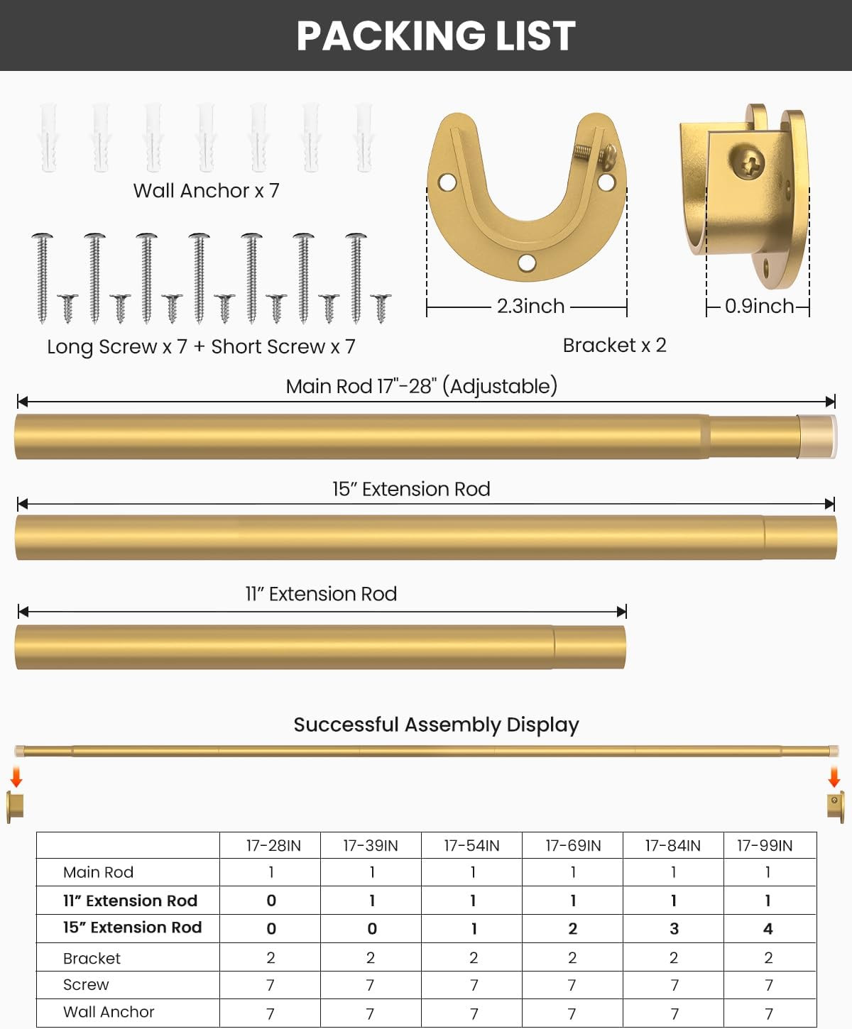 Adjustable Metal Closet Rod, 17-69 Inches, Heavy Duty for Wardrobes Laundry
