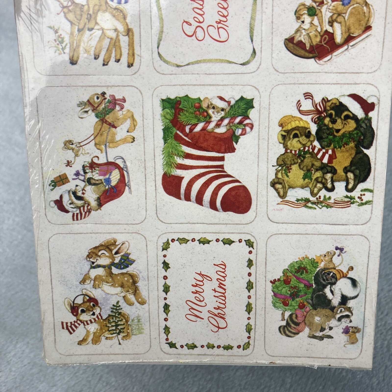 SEALED Vtg 1980s Cute Christmas Critters Holiday Sticker 4 Sheets Pack