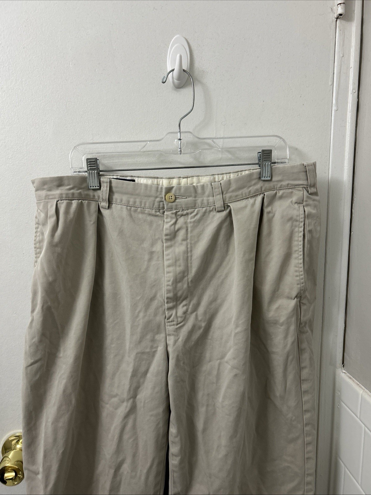 VTG Polo Ralph Lauren Andrew Pants Mens 36x28 Tan Pleated Chino Cotton Trousers