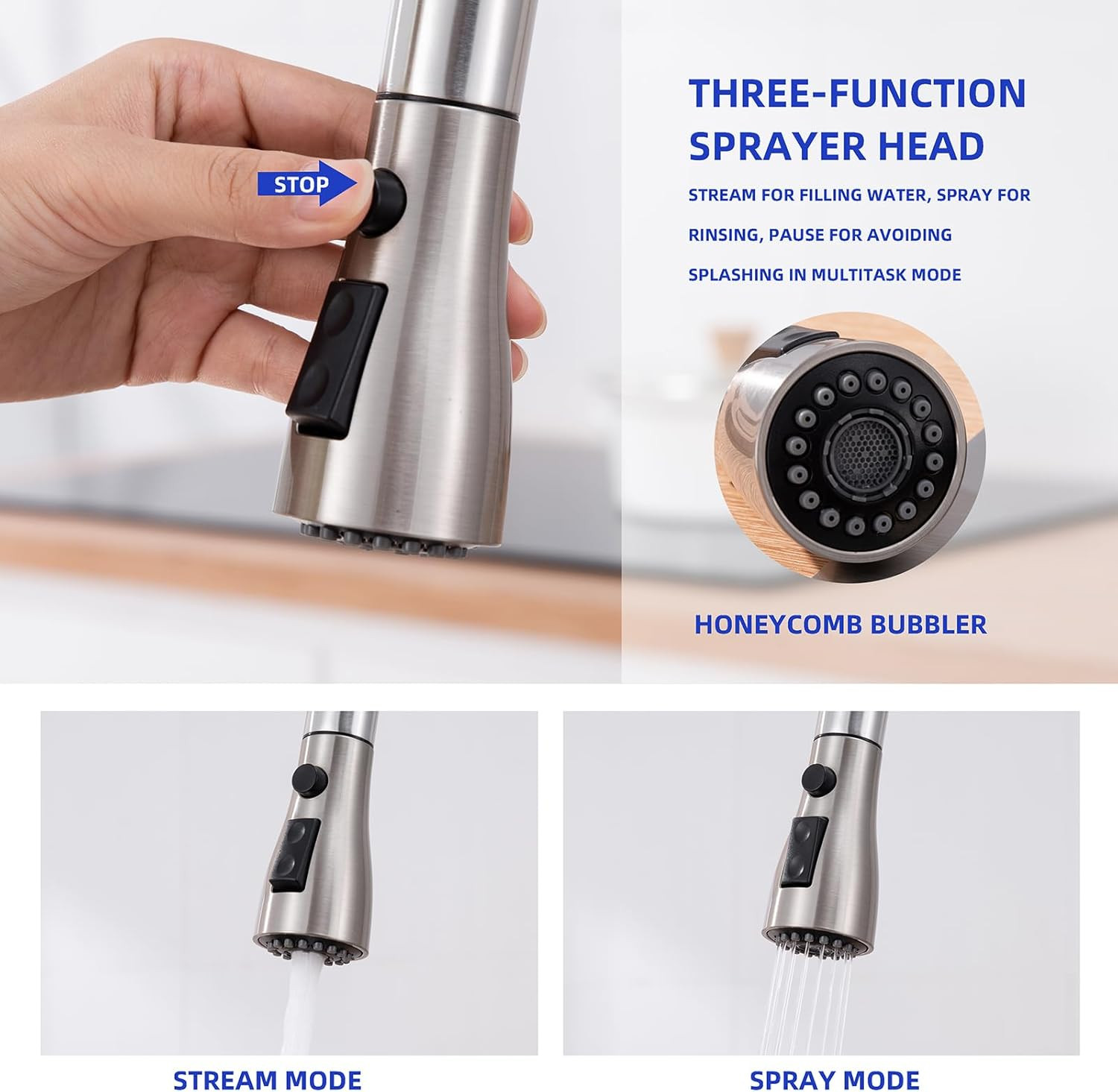 Stainless Steel Kitchen Faucet with Soap Dispenser Pull Down Sprayer