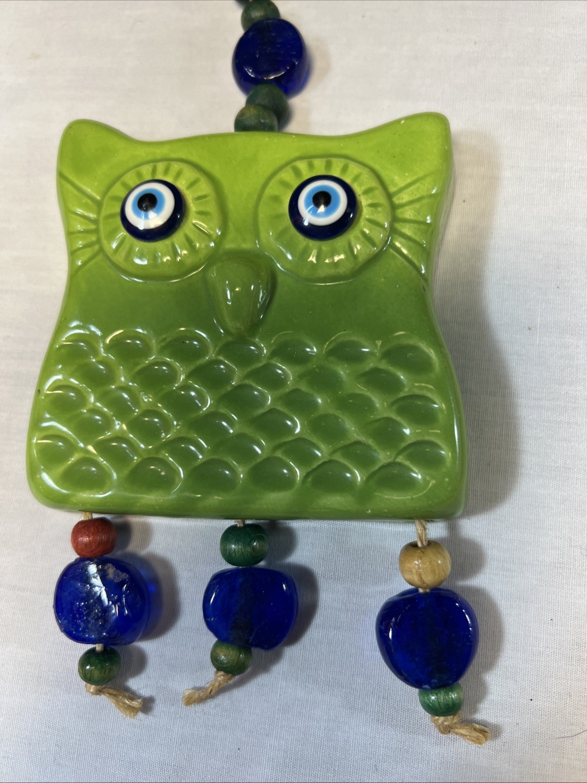 как выглядит Hanging Beaded Ceramic Green Owl фото