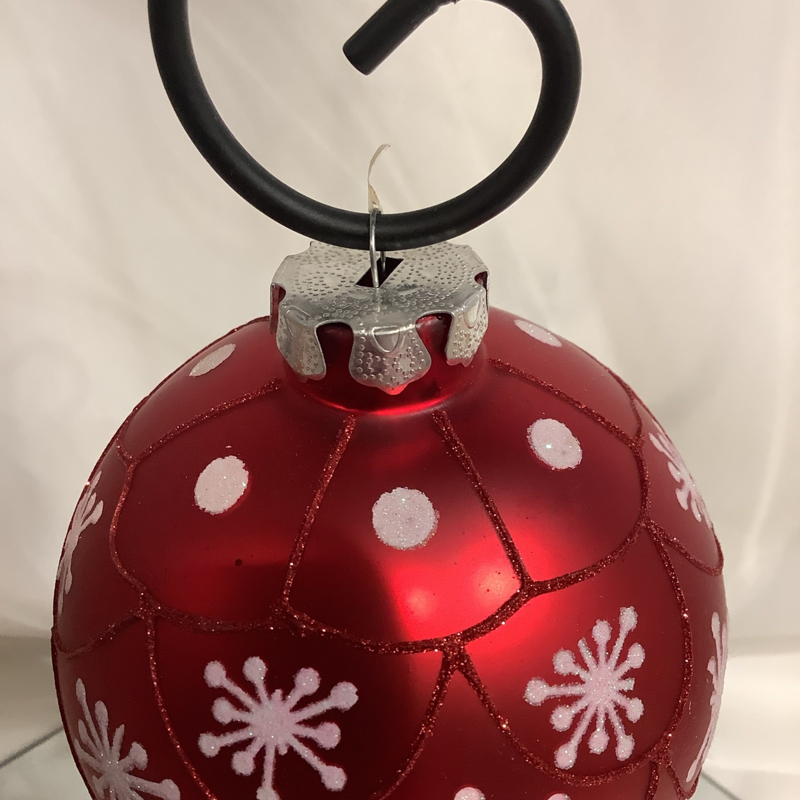 как выглядит Handmade 4.5 Czech Glass Ornament Red Ball with White Glitter Snowflake фото