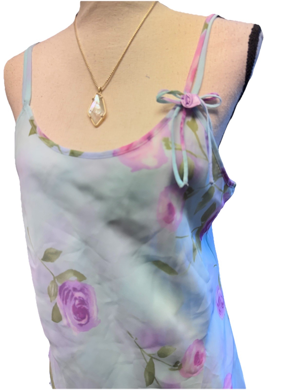 Y2K Coquette Sheer Floral Slip Dress Sz L Fairycore Pastel Enchanting Babydoll