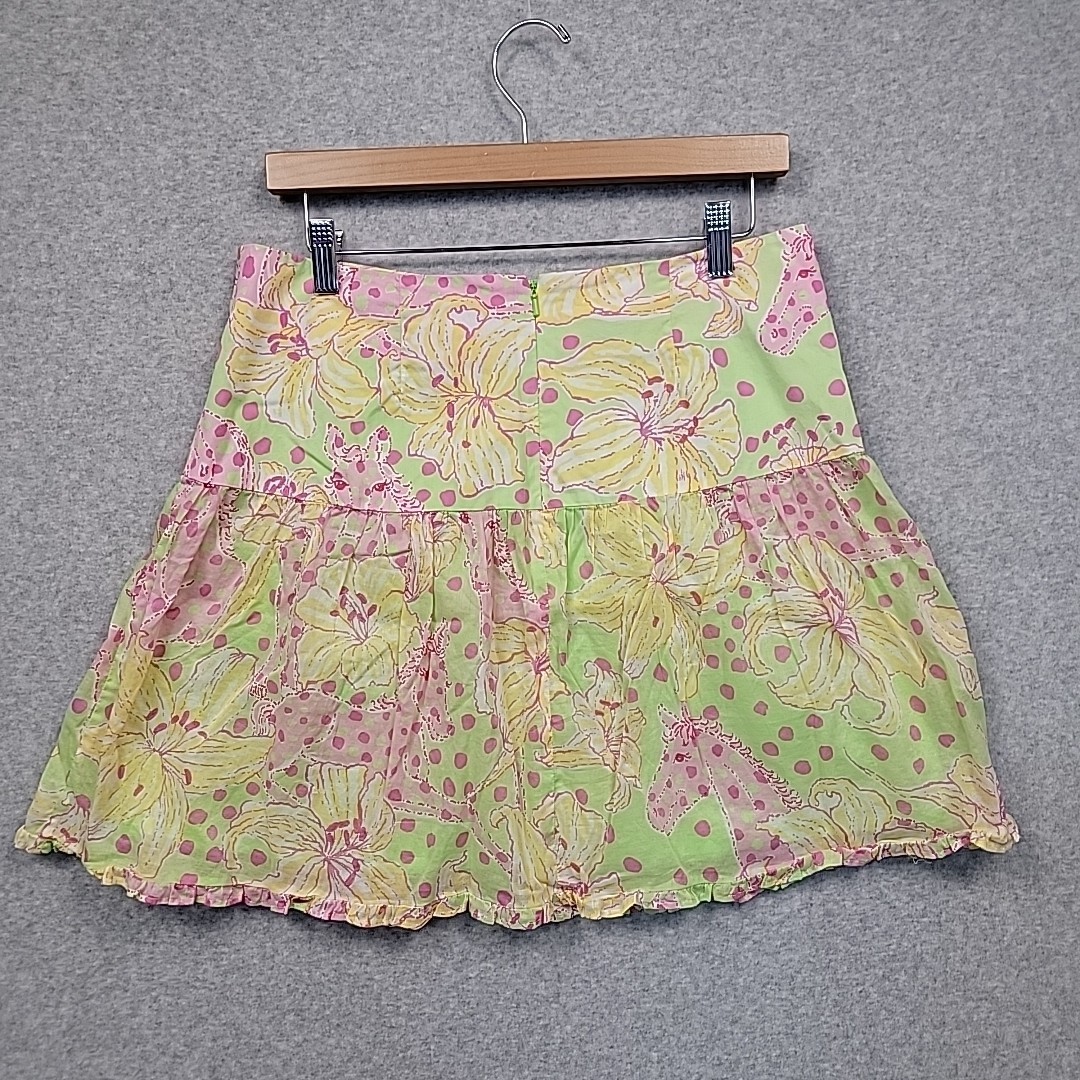 как выглядит VTG LILLY PULITZER Fillies for Lillies Floral Print Tiered Cotton Mini Skirt 10 фото