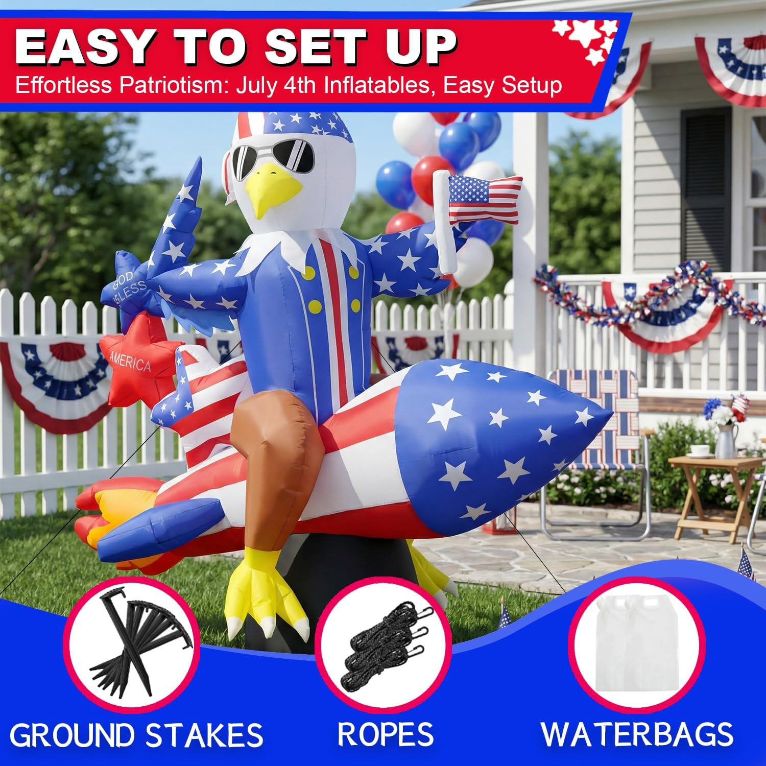 • 6Ft Patriotic Independence Day 4Th of July Inflatable American Eagle on Rocket w