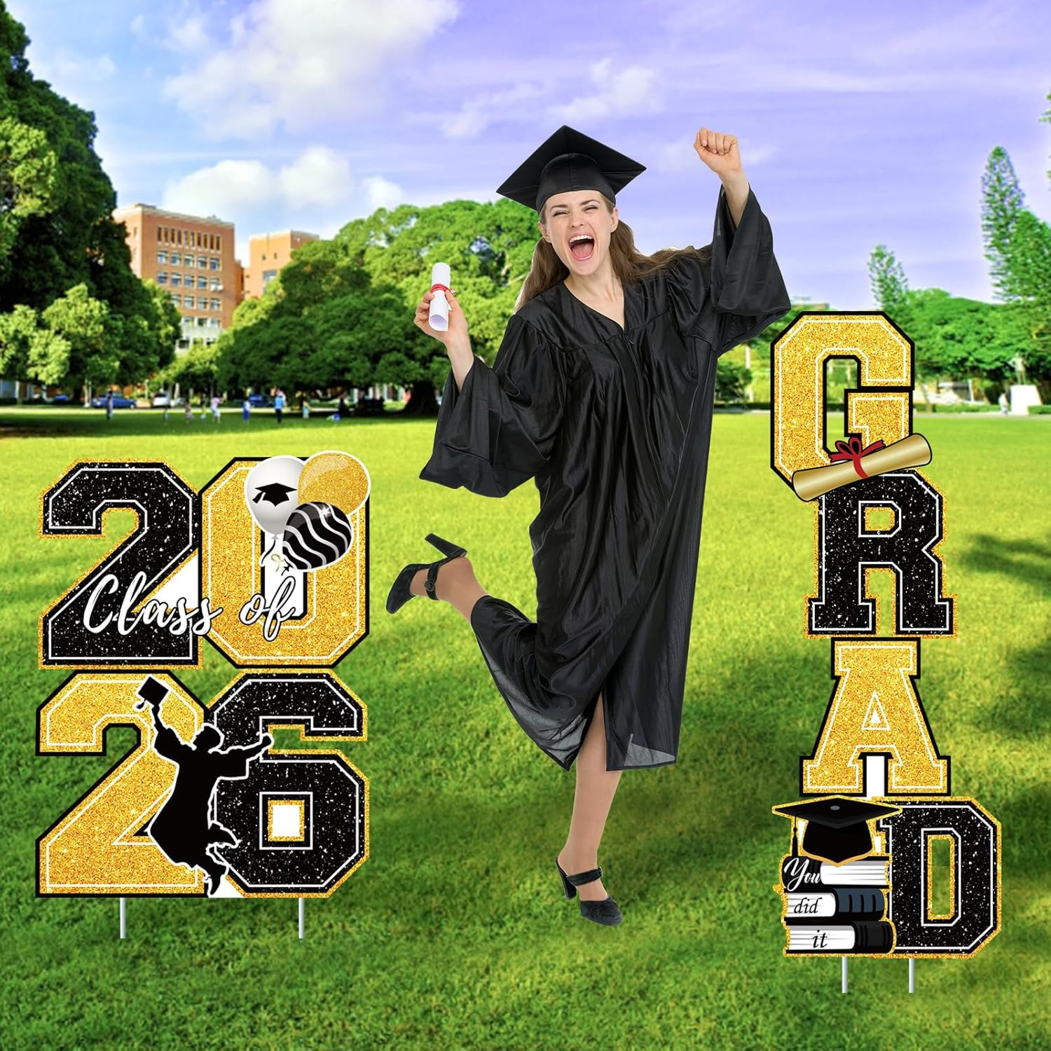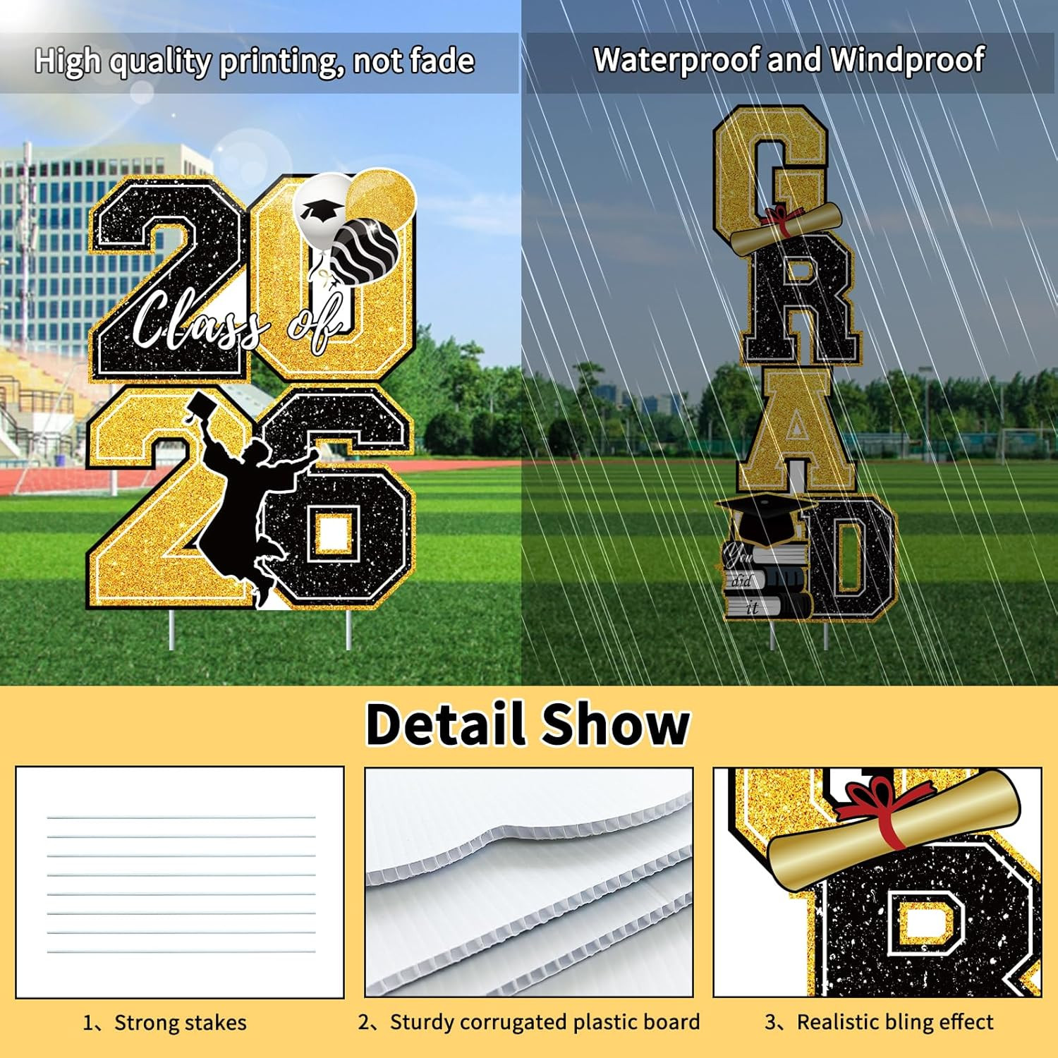 Graduation Yard Signs Class of 2026 Decorations, 4 Pcs Large Size 2026 Grad Wate
