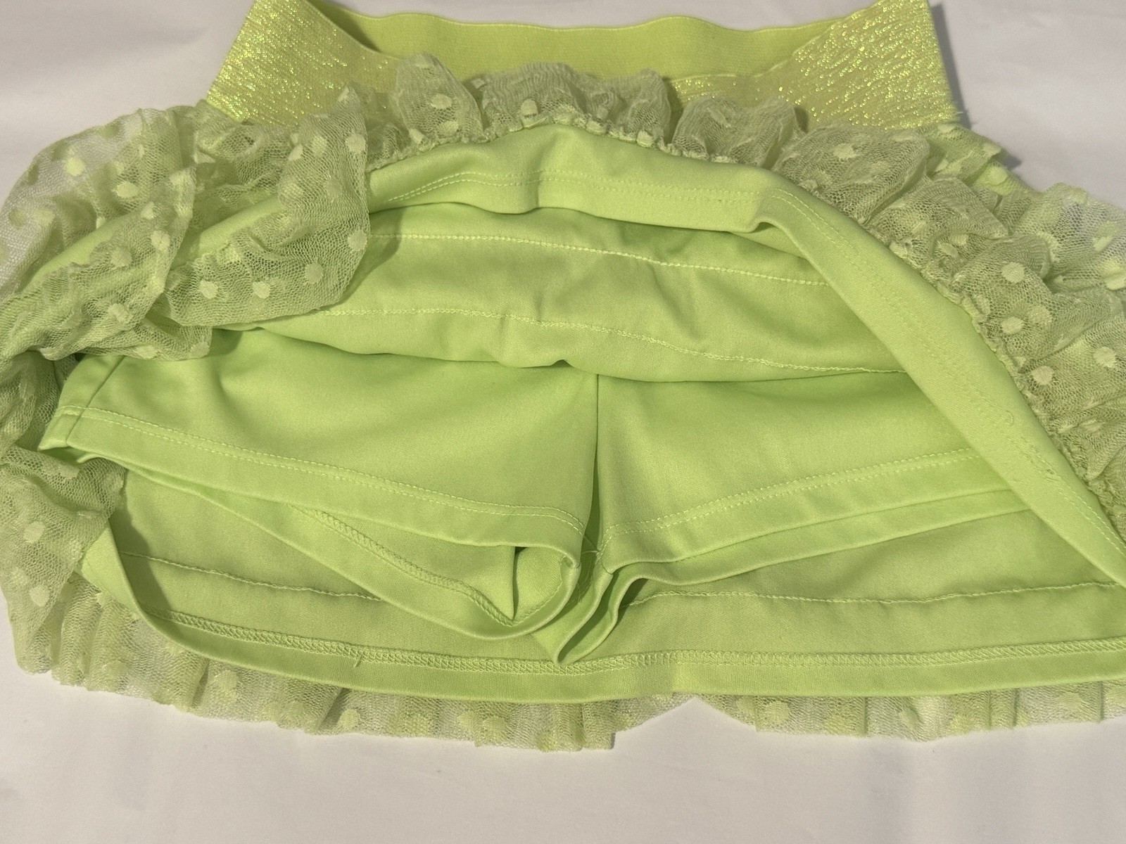 Justice Girls 8 Green Polka Dot Tulle Ruffle Skort Pull-On