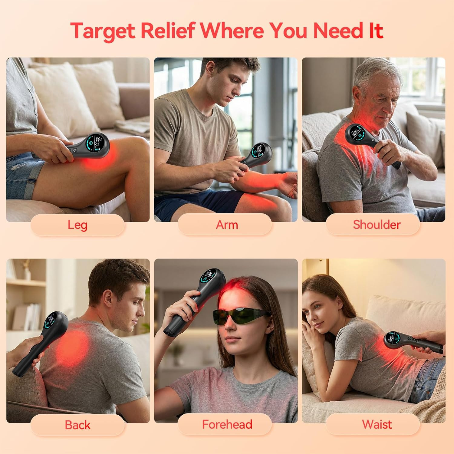 Handheld Red Light Therapy Device for Pain Relief - Portable Versatile