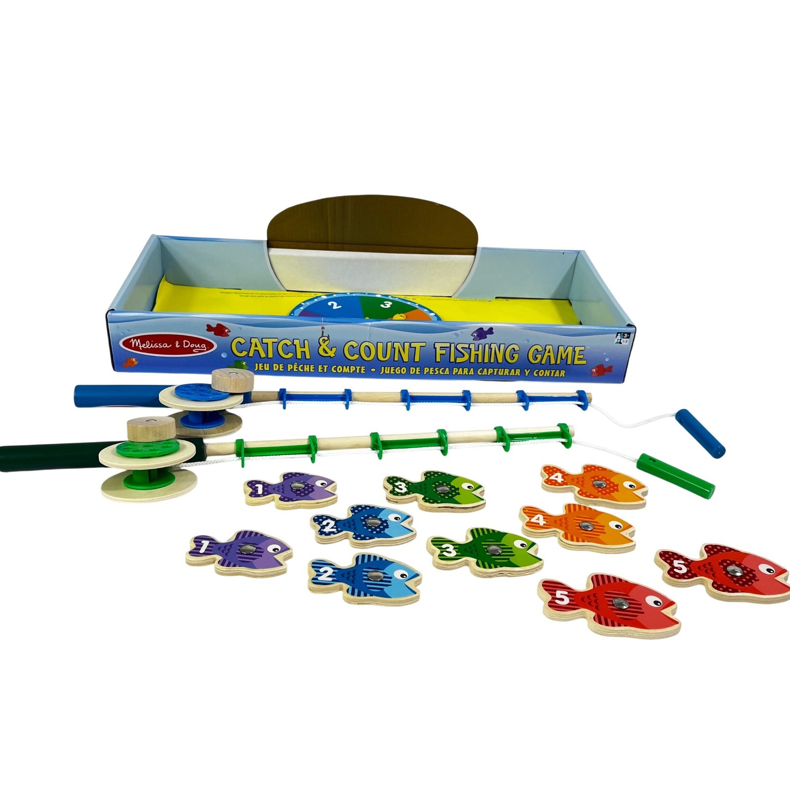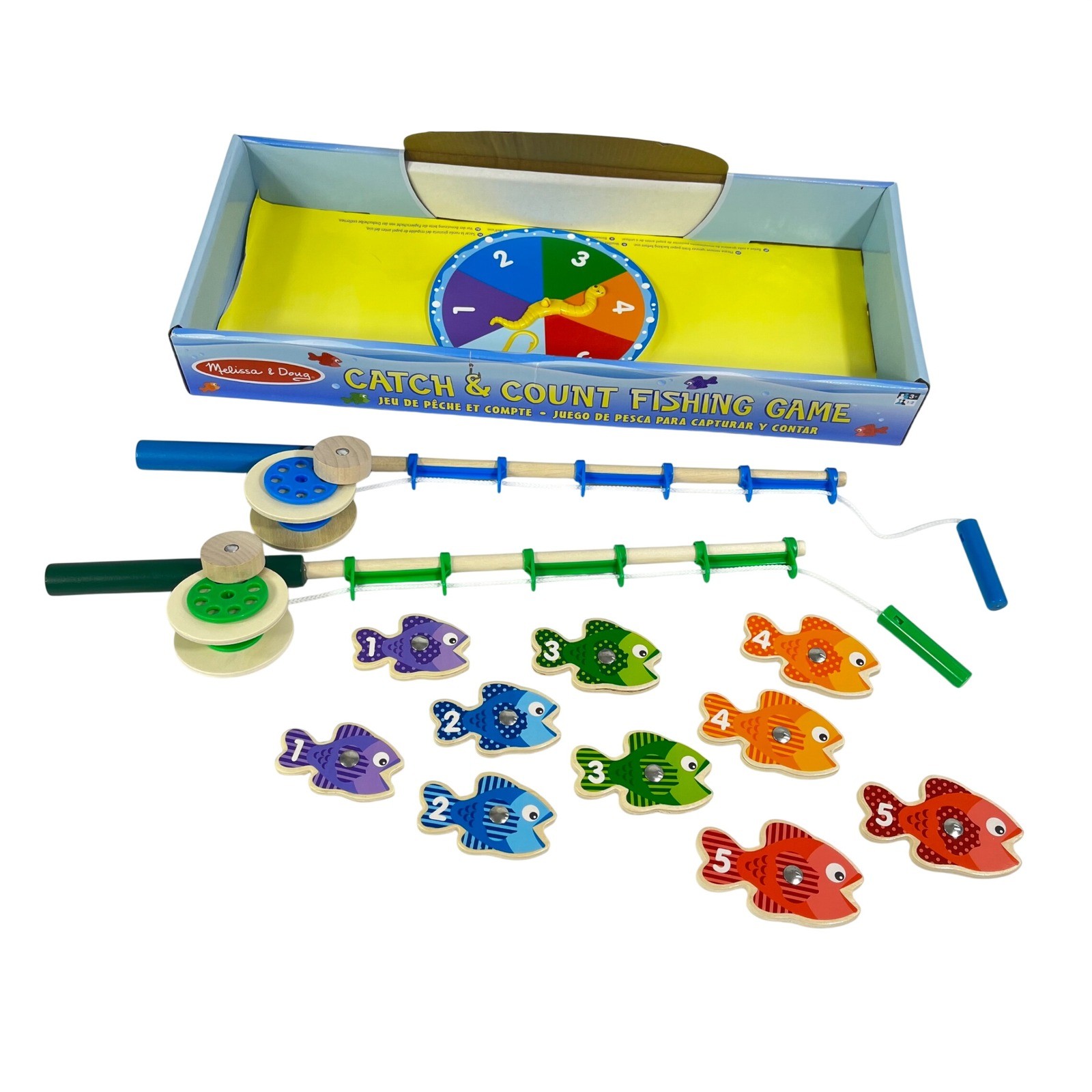 Melissa Doug Catch Count Fishing Game Magnetic Wooden 2 Poles