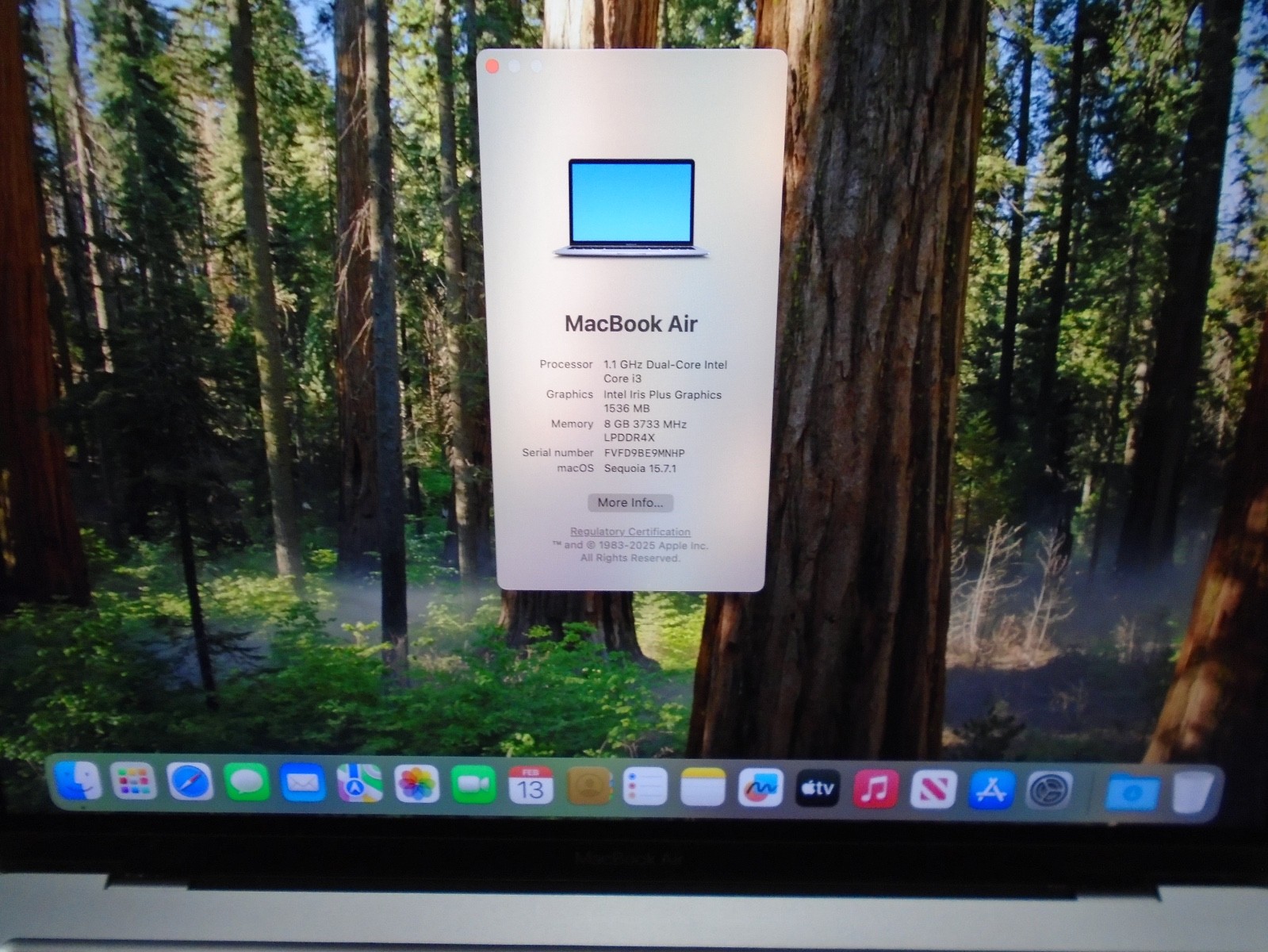 2020 release Apple MacBook Air, 13, 1.1GHz i3, 8gb RAM, 256gb SSD, Excellent