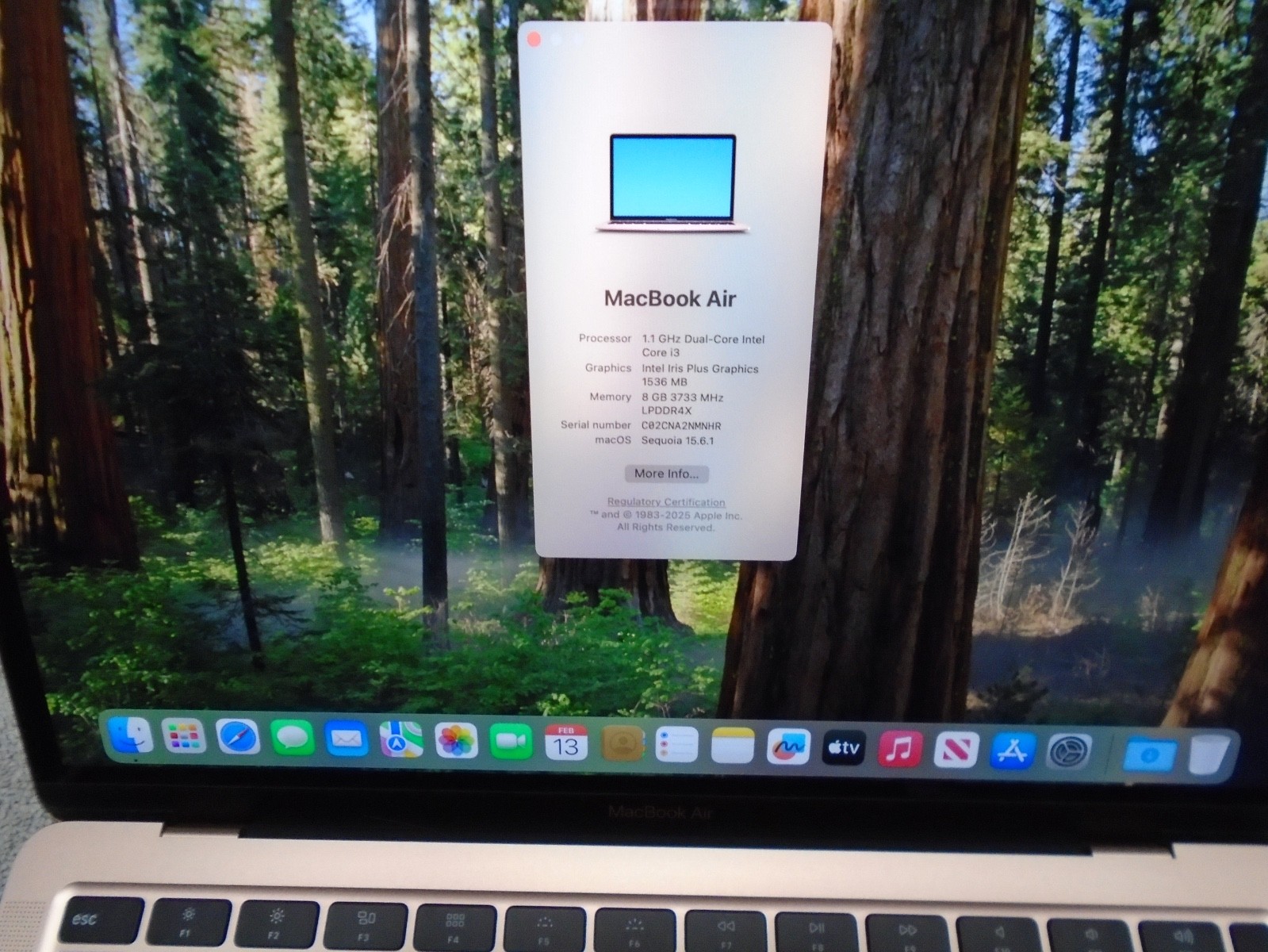 2020 release Apple MacBook Air, 13, 1.1GHz i3, 8gb RAM, 256gb SSD, Excellent