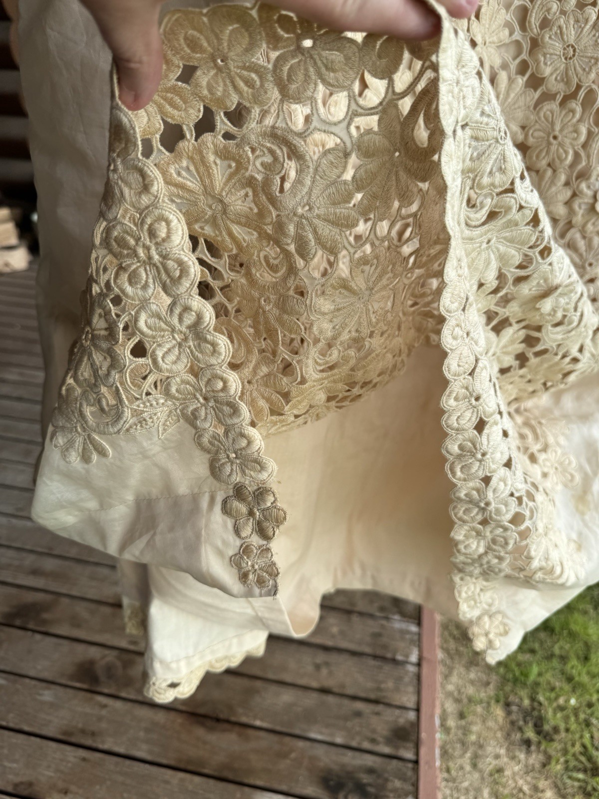 Antique Dress Victorian Wedding Crochet Front, Back Sleeves C7B